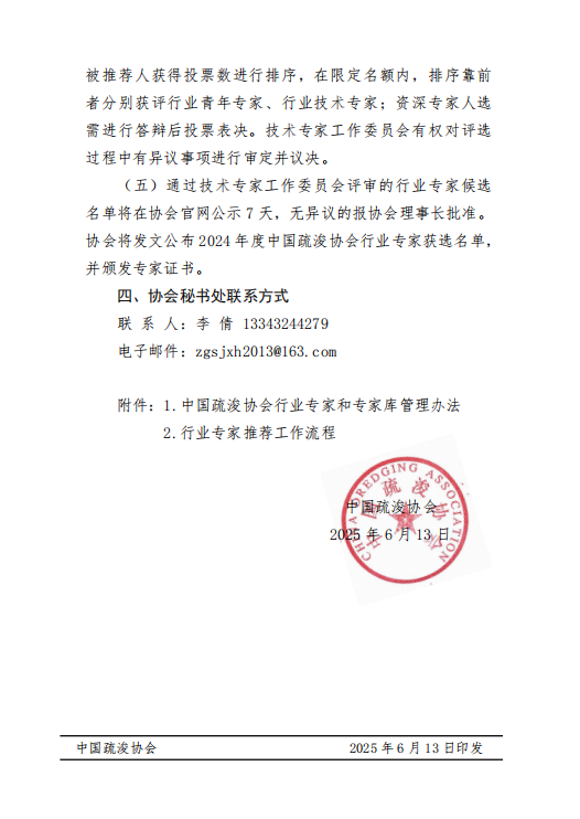 关于开展2024年度中国疏浚协会行业专家评选活动的通知
