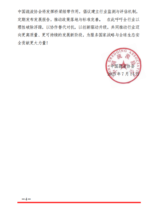 中国疏浚行业拒绝“内卷”、共促高质量发展的倡议书