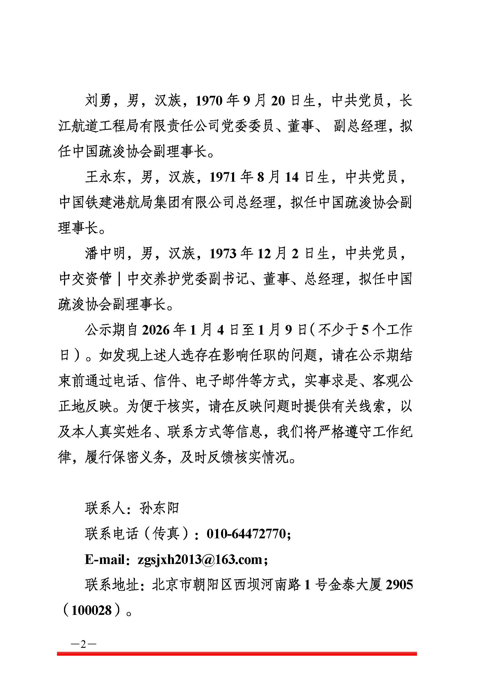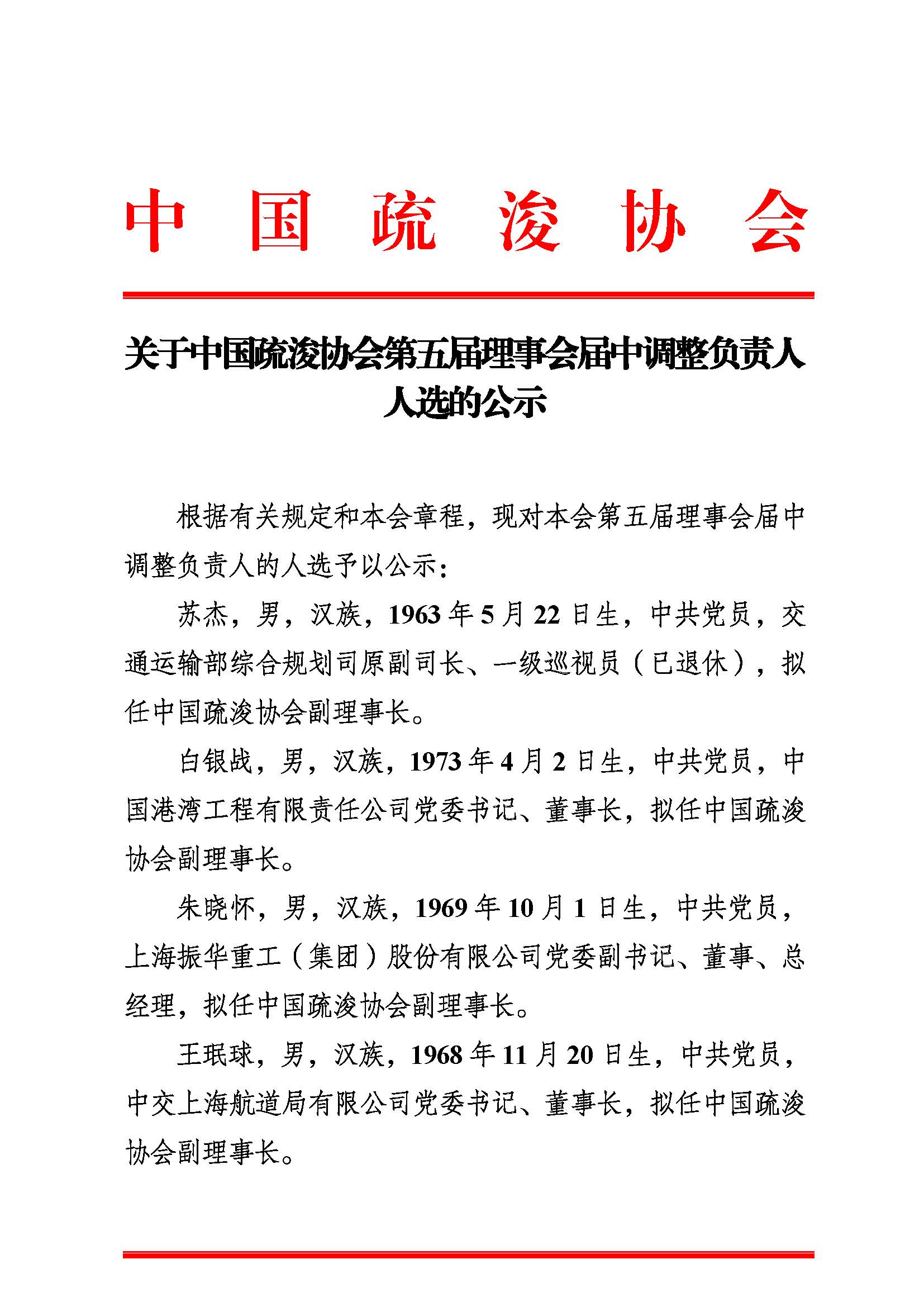 关于中国疏浚协会第五届理事会届中调整负责人人选的公示