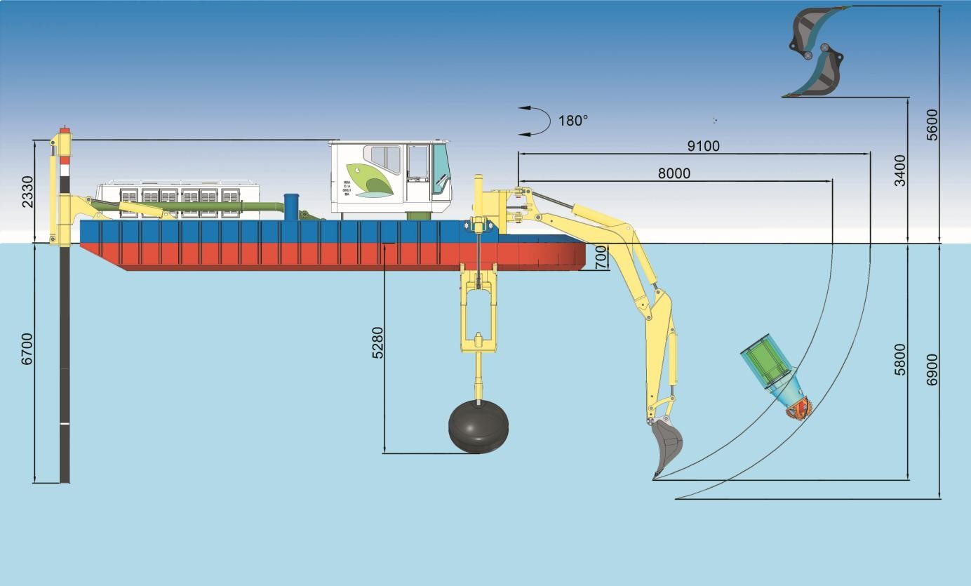 “华夏水蛙”最大的优势是适应在湖内、内河航道、潮湿地和旱地从事各种挖掘作业,同时挖掘臂端可以任意更换绞刀泵、抓斗、铲斗、耙子、竖桩斗等多种工作附件,既可清理河道淤泥,也可清理各种水生植物和垃圾。该船还能应用于水上工程施工,可用于河底埋设电缆和管道,实现功能多样化的作业,所有核心配置均采用国际知名品牌(力士乐、西门子、伊顿、施耐德等)。