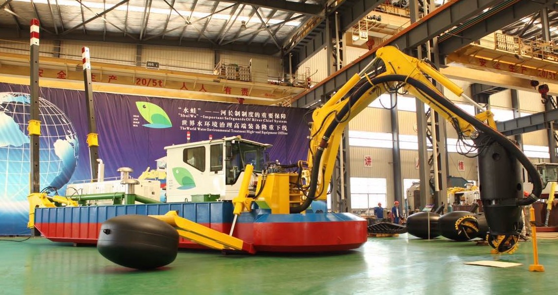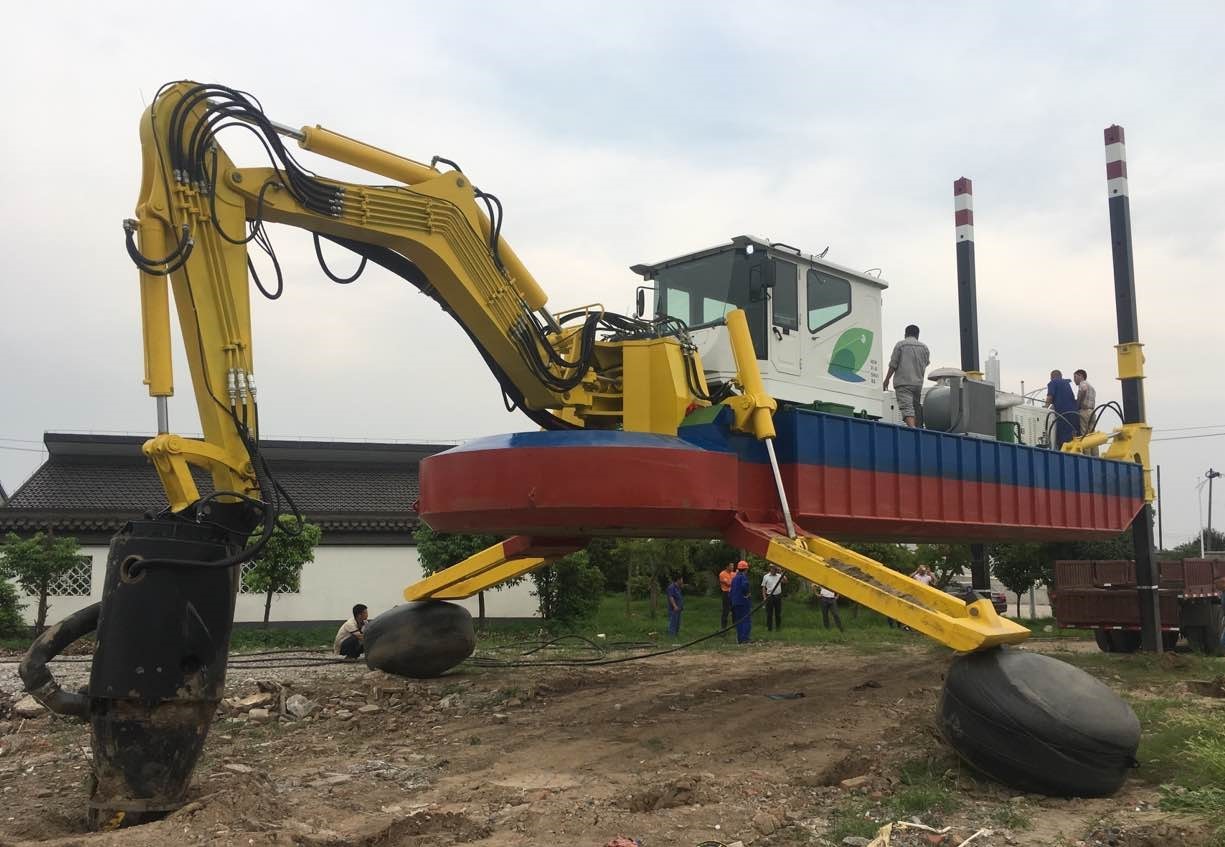 作为国内成套挖泥船疏浚设备制造的专业企业,华夏重工旗下新型两栖多功能挖泥船——“华夏水蛙”,集绞吸式和反铲于一身,可广泛用于河湖环保疏浚工程。