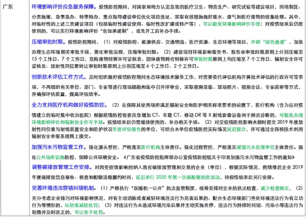 因不同地区虽然类型上有相同,但因区域、企业类型、监管要素等特点,各省市在创新疫情期间生态环境保护措施方面均在具体内容上呈现不同的规定,故金诺梳理分析出如下表单: