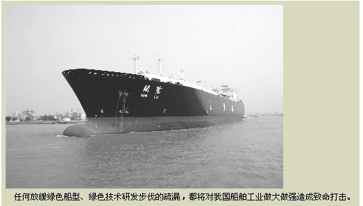 专家指出,在“绿色浪潮”下,公约规范所发生的重大变化,将引发造船航运生态的重大变革。特别是在当前全球金融危机之后,航运业再次陷入低谷之际,绿色技术、绿色标准规范将成为此次格局调整的重要推手,新的满足国际公约和国家节能减排要求的绿色船型、绿色技术将会是下一阶段造船新订单争夺的关键。