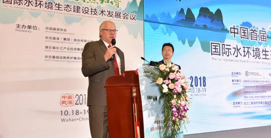 2018年10月18日,亚洲疏浚行业峰会——由中国疏浚协会、中交疏浚(集团)股份有限公司、湖北省长江产业投资集团有限公司、中交基础设施养护集团有限公司共同主办的中国首届“与自然和谐”国际水环境生态建设技术发展会议于上午八点二十分,在武汉欧亚国际会展大酒店准时开幕。
