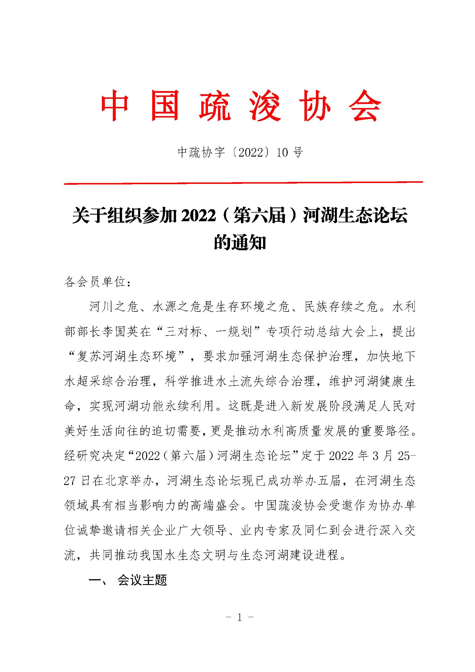 关于组织参加2022(第六届)河湖生态论坛的通知