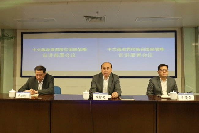 会议由中国交建总裁助理、中交疏浚董事长周静波主持。中交疏浚党委书记、高级副总裁胥昌荣,党委副书记、纪委书记、工会主席朱朝晖等在京领导班子成员,总部部门负责人及全体员工,天航局、中交生态环保公司、中交海建部分领导员工近100人参加会议。