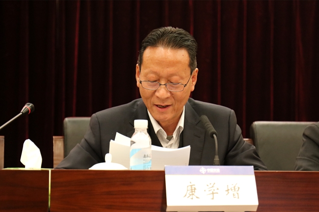 中交疏浚总裁康学增作题为《瞄准一流目标 抓牢九个统筹 走出一条专业化子集团改革的成功之路》的报告。