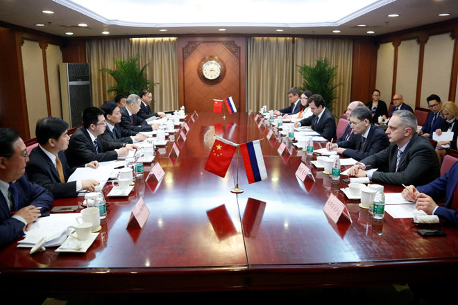 会上,肖亚庆欢迎俄远东发展部代表团来访,并认为此次双方会面交流企业项目合作是在积极落实 “一带一路”国际合作高峰论坛精神。他指出,中央企业在国际化、经营管理等方面积累了经验,国资委高度重视中俄远东开发合作,支持中央企业参与远东地区的项目,进行投资建设等。他表示,希望在中俄两国在现有的高层合作机制基础上加强与俄远东发展部的合作,协调组织有关项目推介活动。