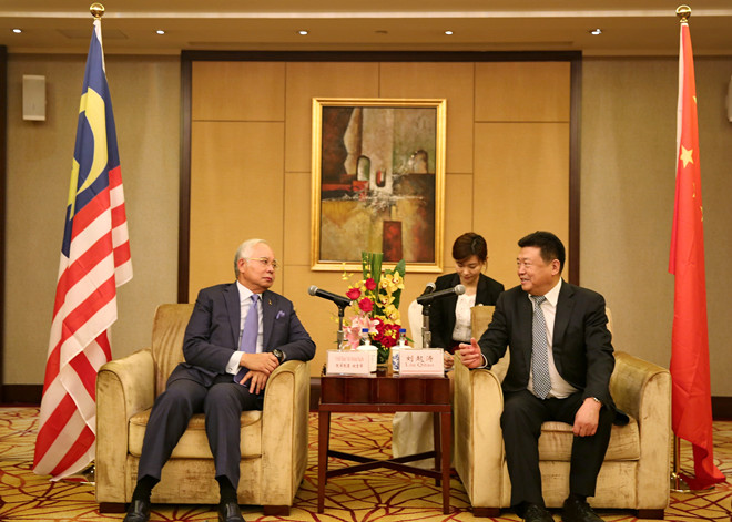 纳吉布高度赞扬了中国交建所取得成绩。他表示,东部沿海铁路是马来西亚近年来最重要的基础设施建设项目,建成后将造福马来西亚人民,并将成为见证中马两国友谊的又一标志性项目,为马来西亚经济和社会的发展发挥重要作用。纳吉布希望中马共建培训中心的计划能够尽快落地,他愿意接受邀请出席签约仪式。