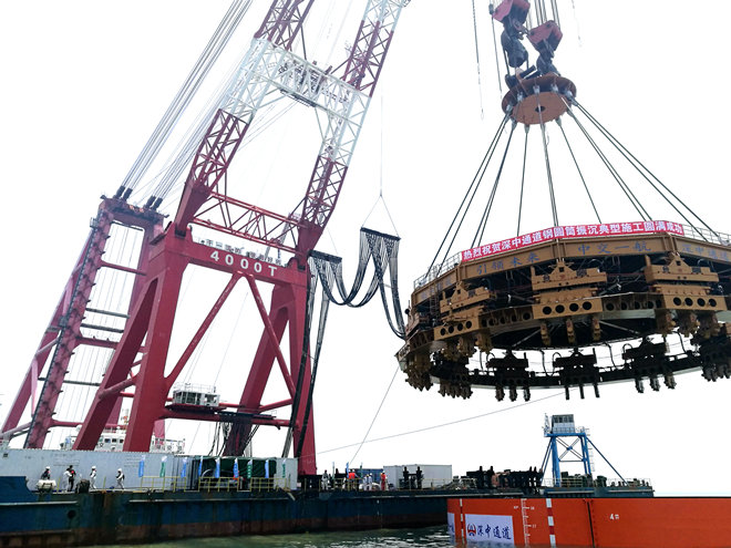 深中通道西人工岛处于珠江口伶仃洋海域,水深达13至15米,外海深水海况复杂。交通运输部原总工程师周海涛认为:“深中通道西人工岛的地质水文条件比港珠澳更复杂,给振沉、清淤、填砂等关键施工环节,带来不小技术挑战。”