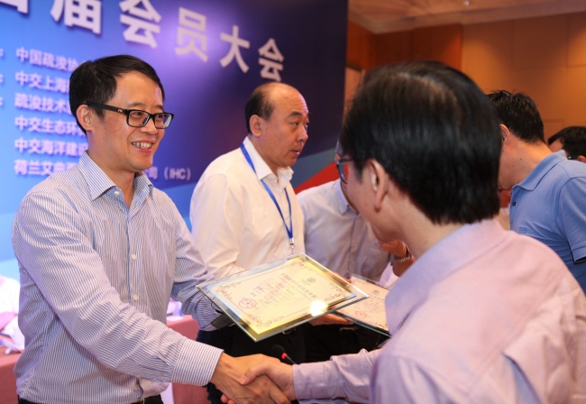 王海怀、周静波等中国疏浚协会第四届理事会负责人为获评首批全国疏浚行业专家代表颁发证书。