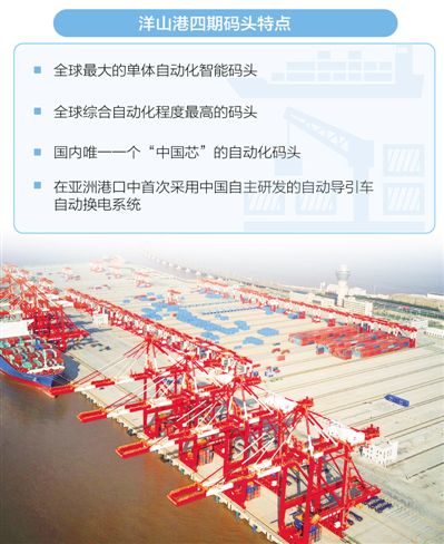 洋山四期是全球最大的单体全自动化码头,也是全球综合自动化程度最高的码头。它的建成为上海港巩固港口货物吞吐能力世界第一地位,加速跻身世界航运中心前列提供了新动力。