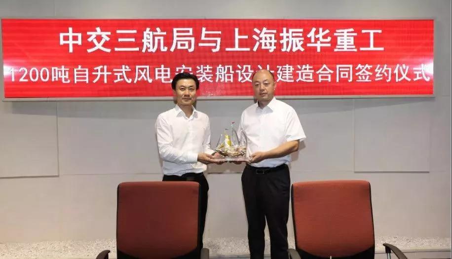 日前,振华重工与中交第三航务工程局有限公司在中交三航局总部举行了1艘1200吨自升式风电安装船设计建造合同的签约仪式。