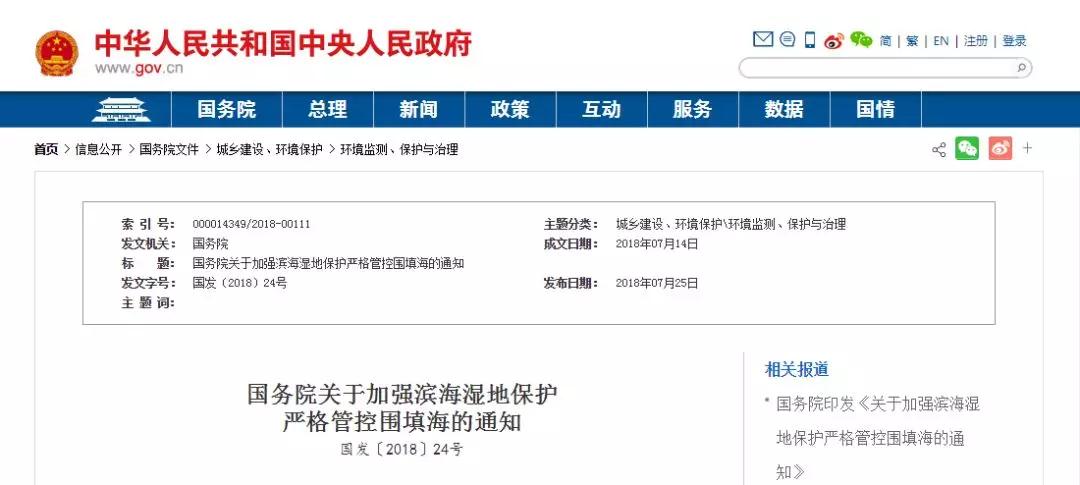 2018年,最受行业关注的无疑是被称为“史上最严”的围填海管控。今年一月初,中国海洋报记者从国家海洋局围填海情况新闻发布会上获悉,结合国家海洋督察整改工作,国家海洋局将聚焦“十个一律”,“三个强化”,采取史上最严围填海管控措施;七月中旬,国务院正式印发《关于加强滨海湿地保护严格管控围填海的通知》,通知明确,完善围填海总量管控,严格审批程序;取消围填海地方年度计划指标,除国家重大战略项目涉及围填海的按程序报批外,全面停止新增围填海项目审批。