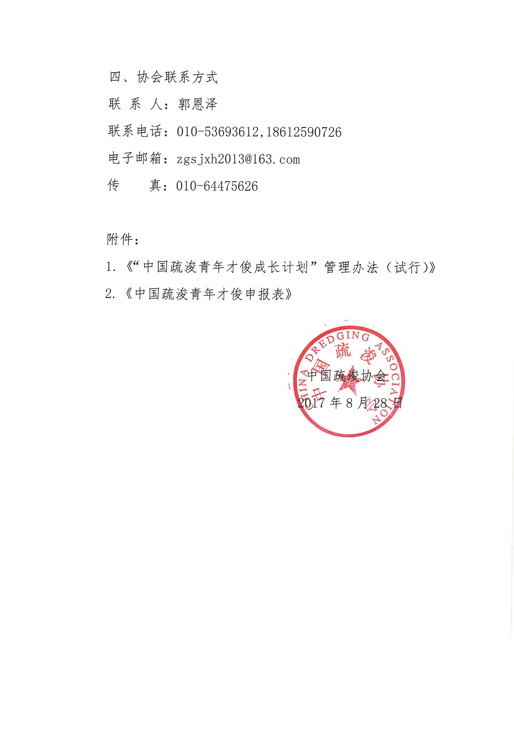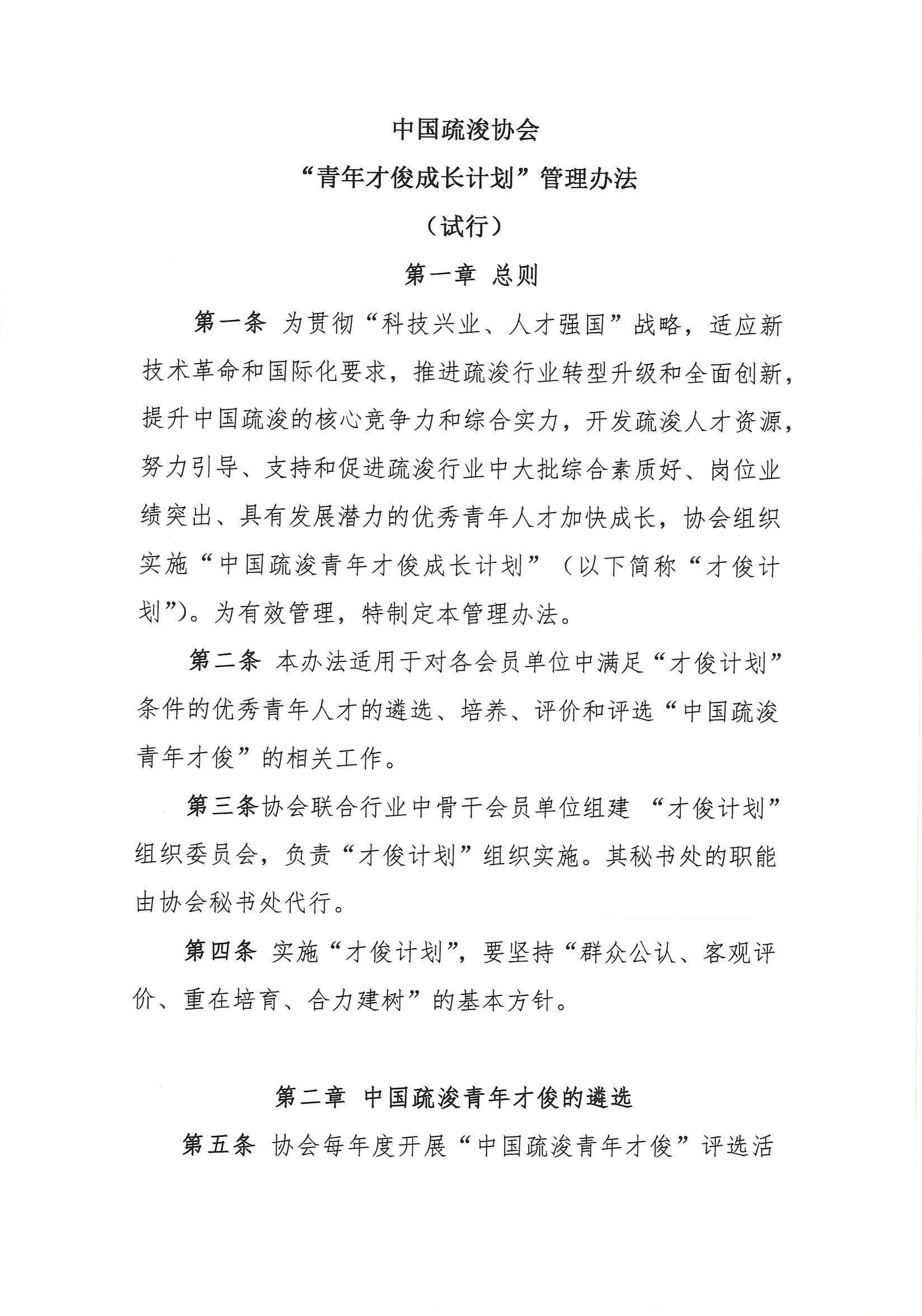关于印发《“中国疏浚青年才俊成长计划”管理办法(试行)》及联合开展评选“中国疏浚青年才俊”活动的通知