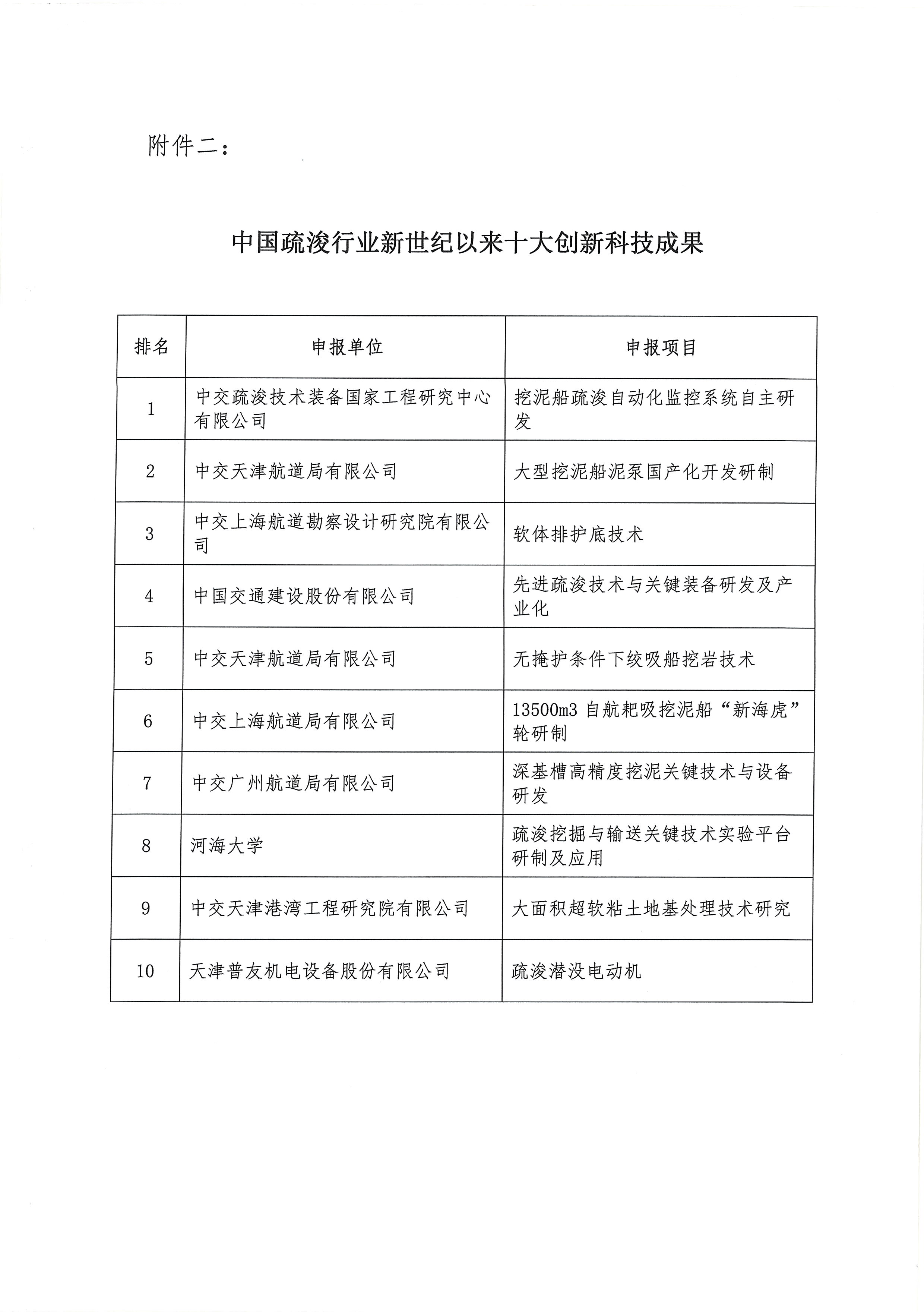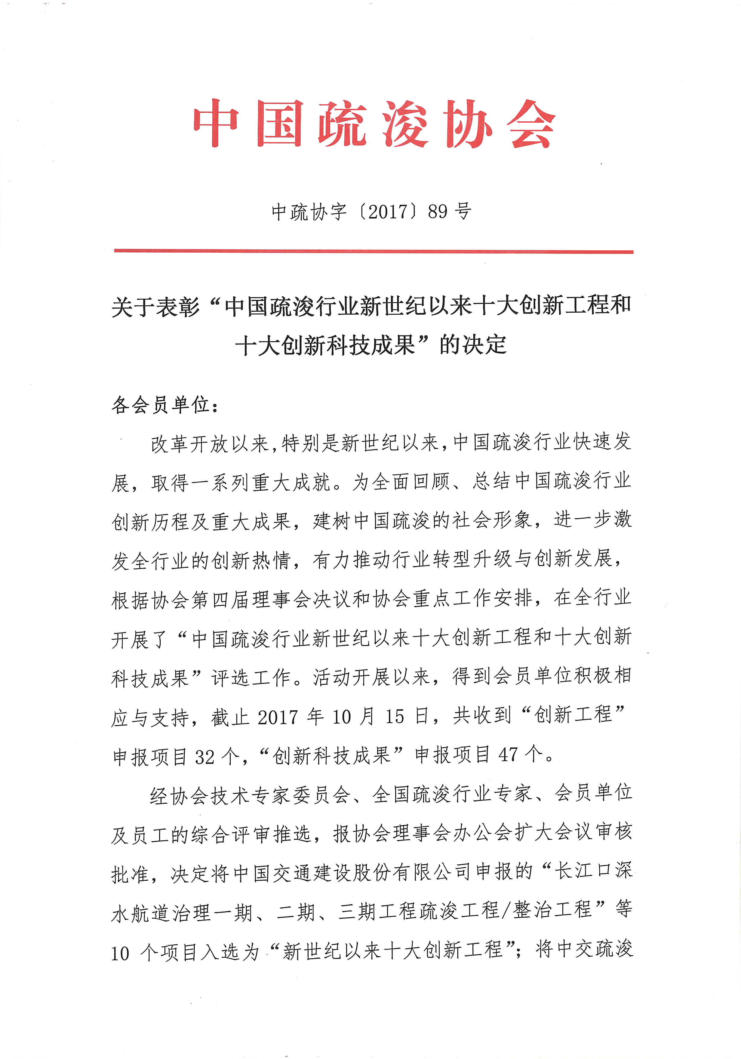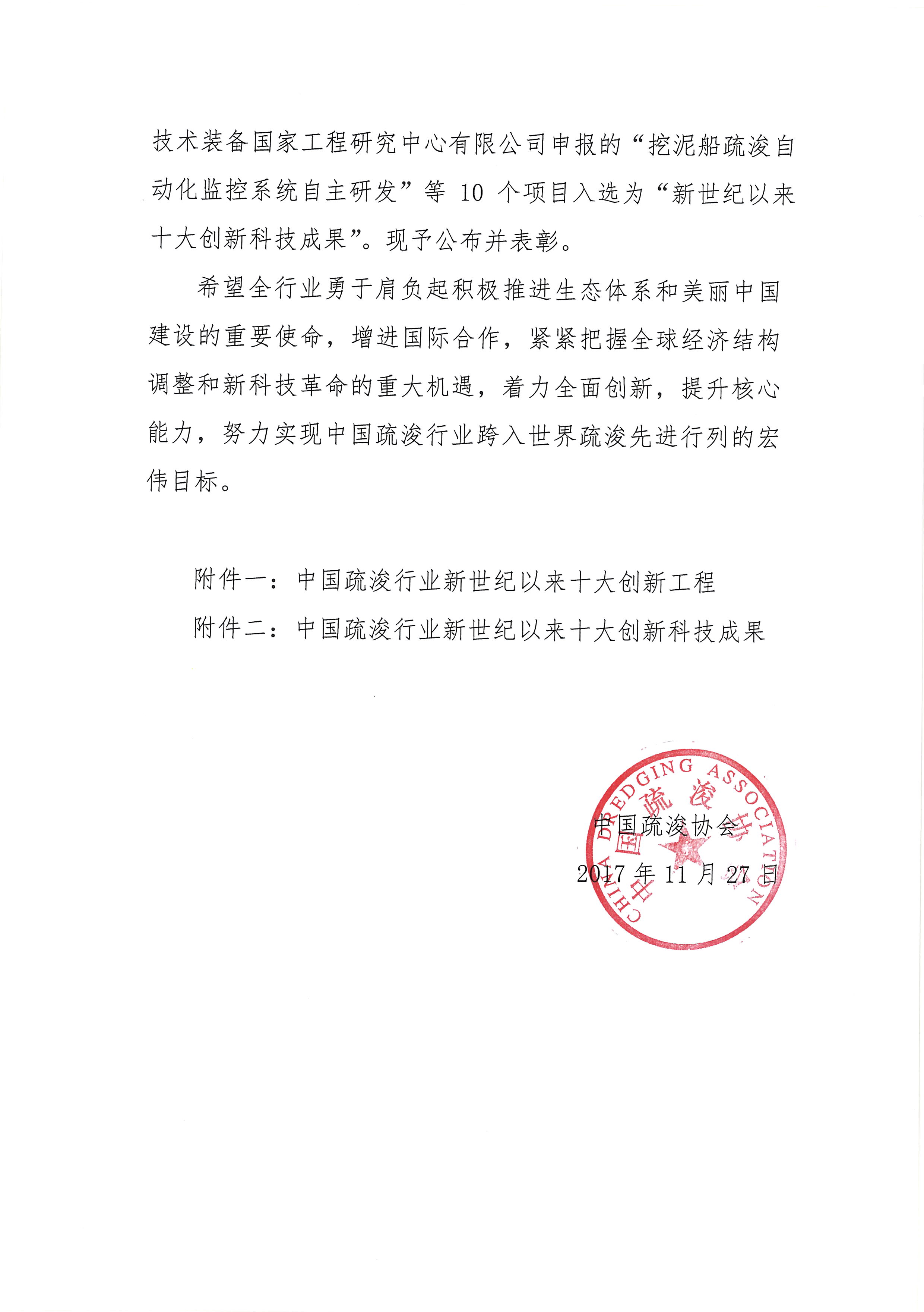 通知下载:关于表彰“中国疏浚行业新世纪以来十大创新工程和十大创新科技成果”的决定