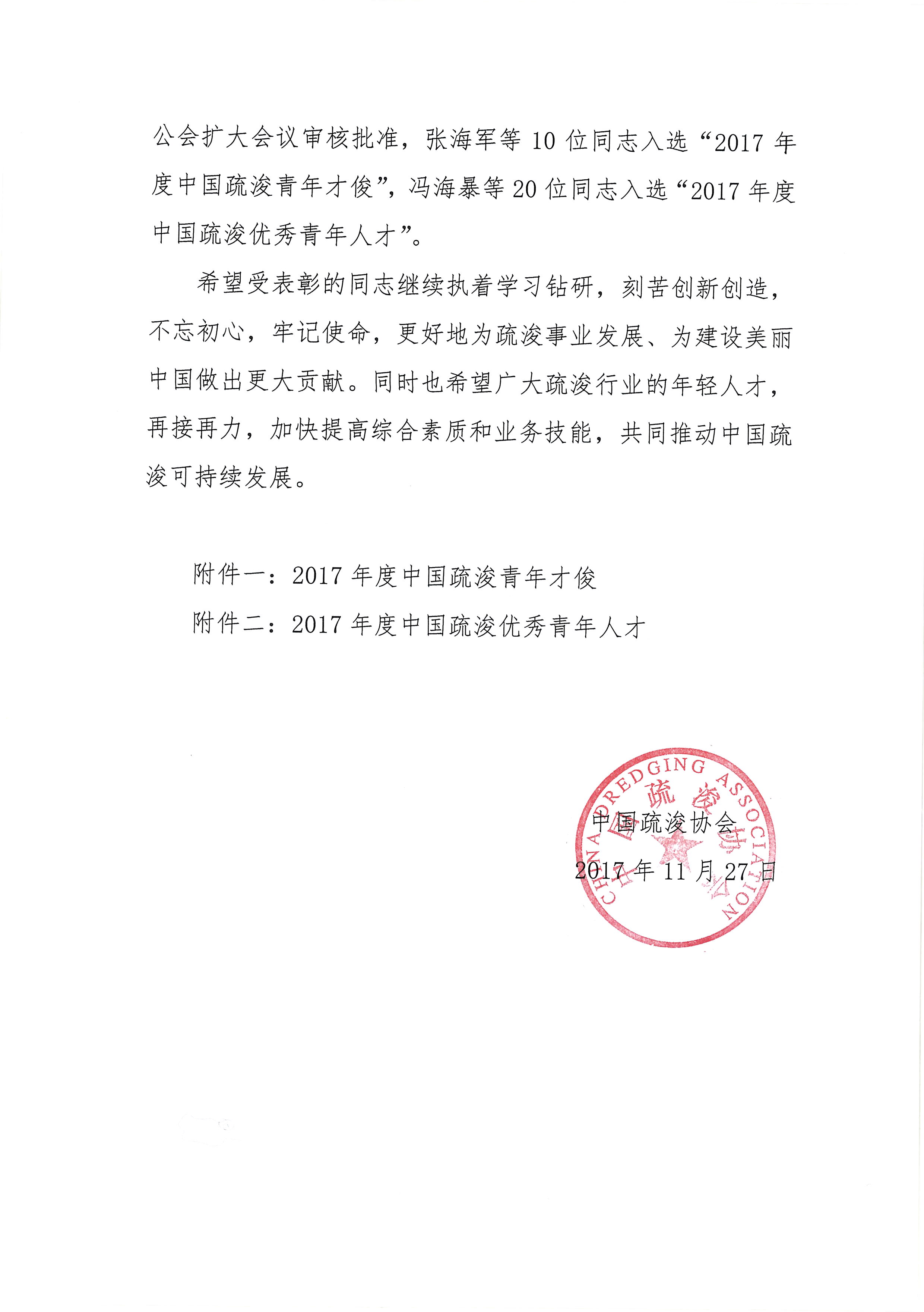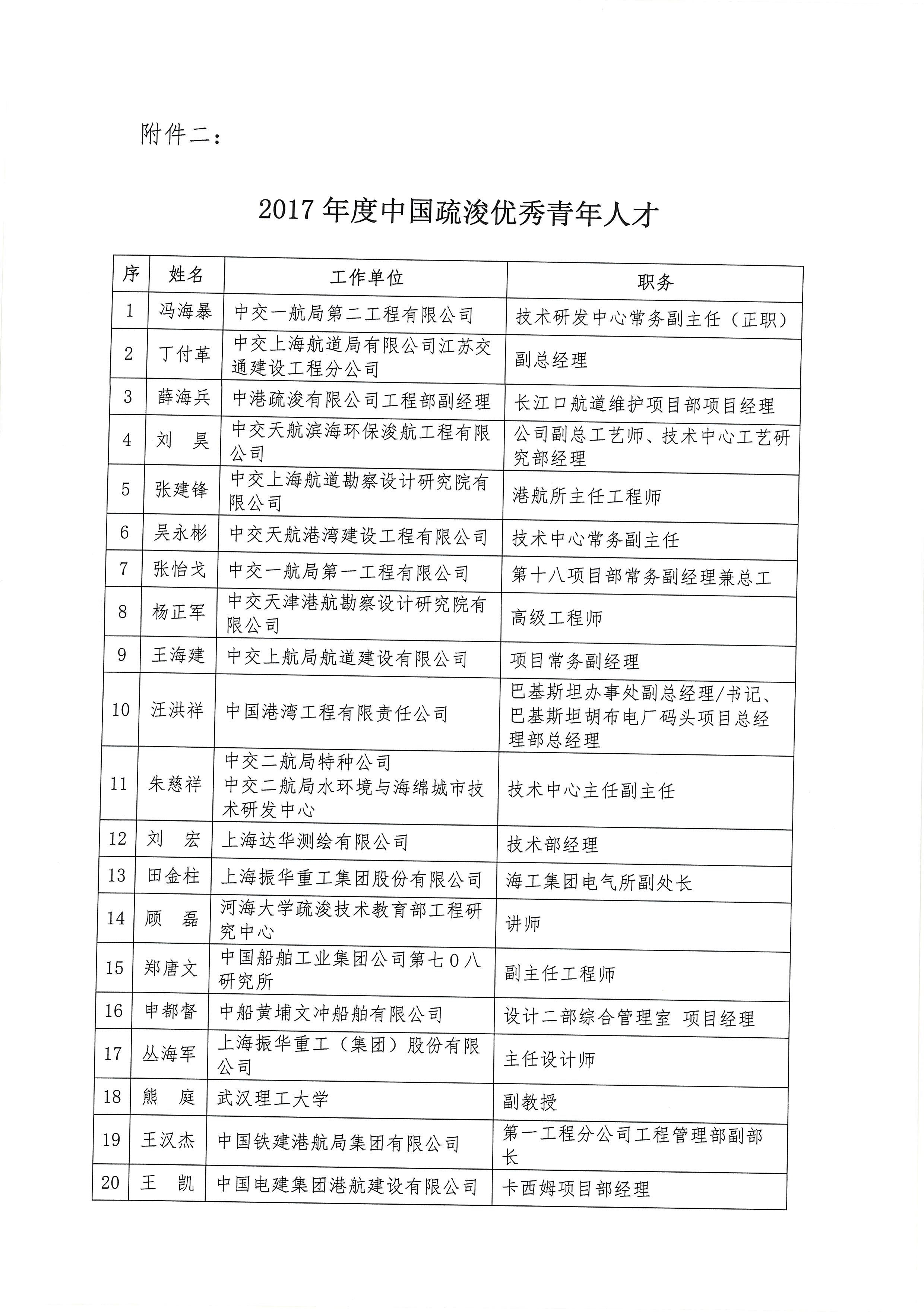 通知下载:关于表彰“2017年度中国疏浚青年才俊”和“2017年度中国疏浚优秀青年人才”的决定