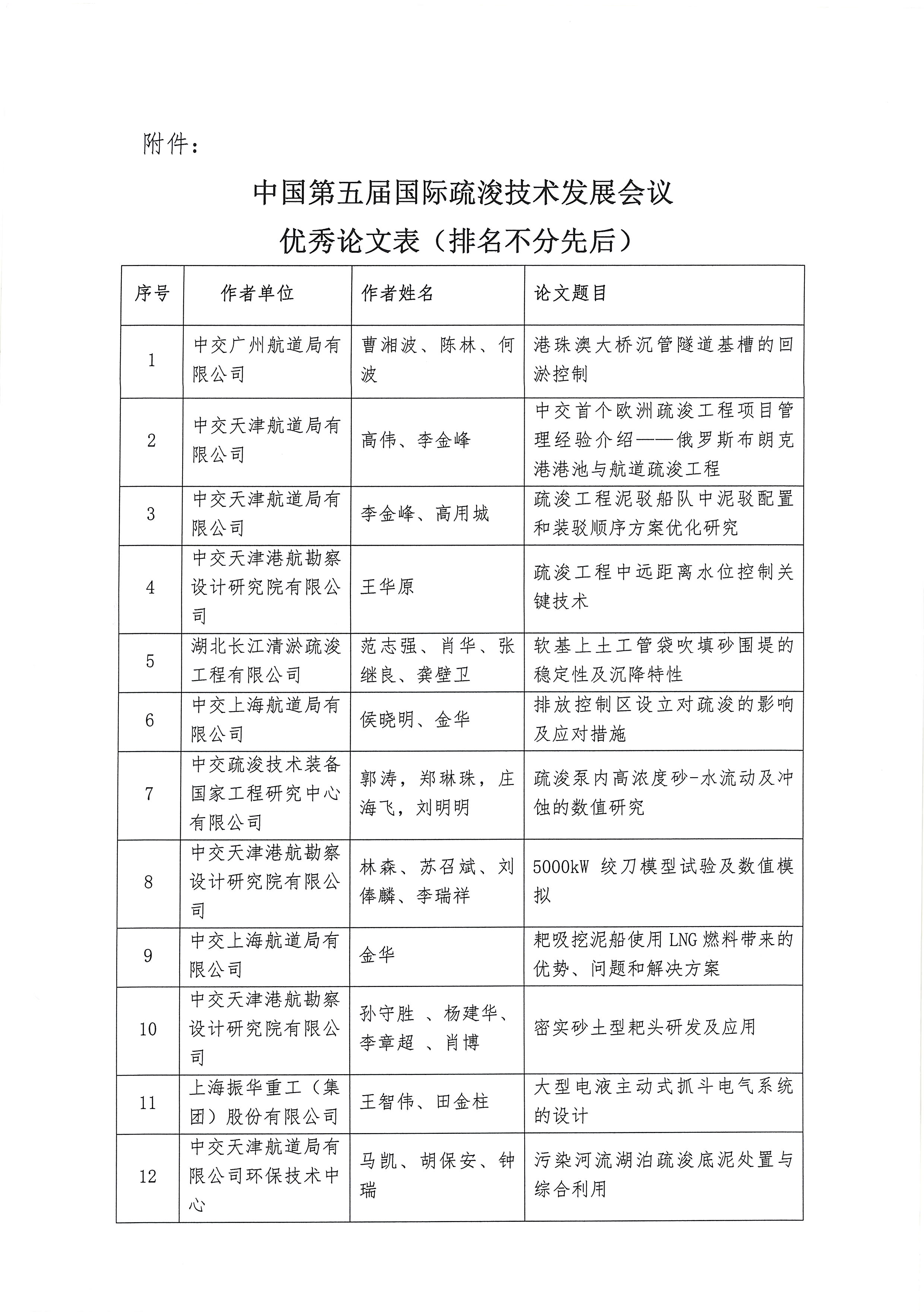 通知下载:关于表彰“中国第五届国际疏浚技术发展会议 优秀论文”的决定
