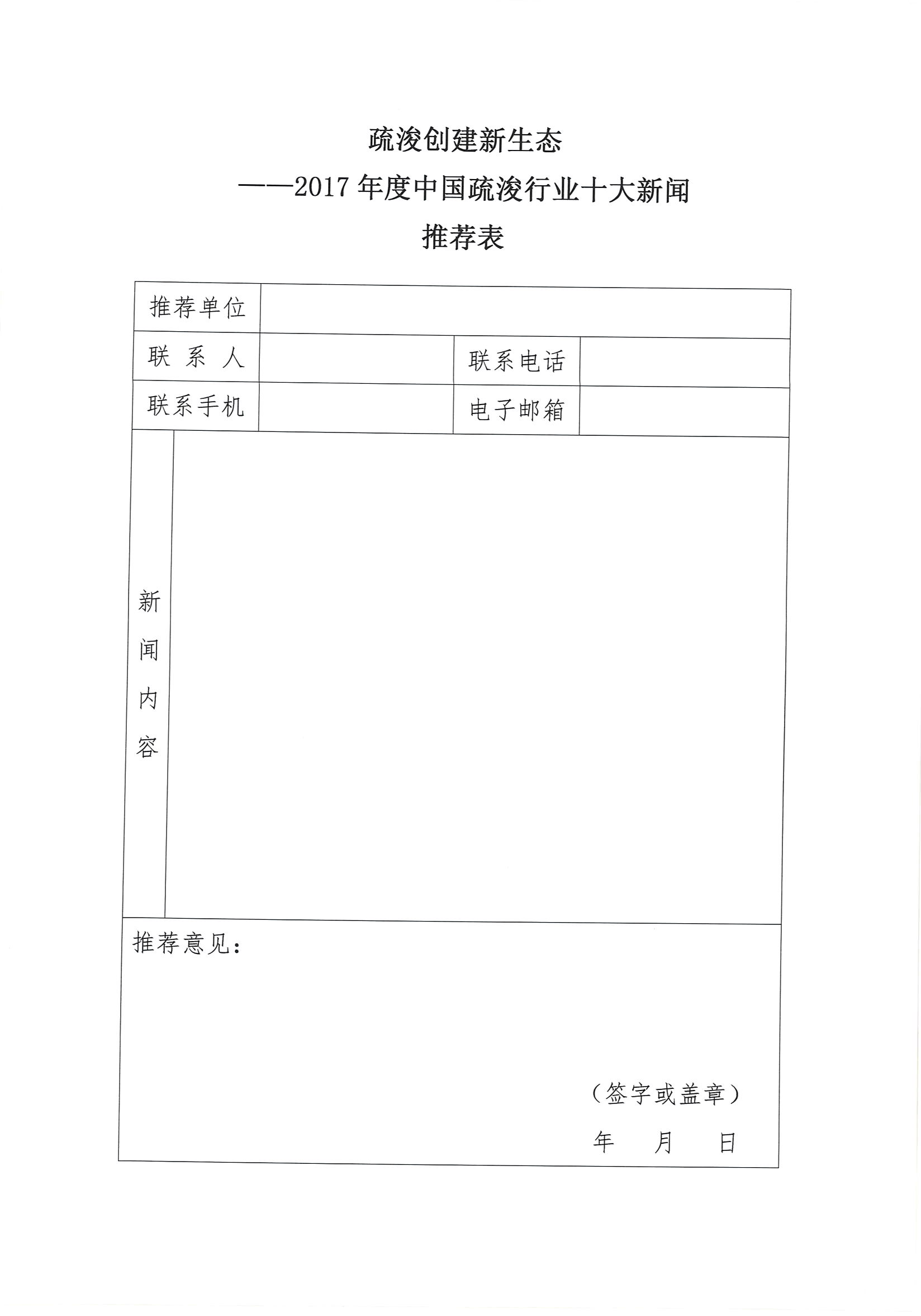 推荐表下载:疏浚创建新生态——2017年度中国疏浚行业十大新闻推荐表