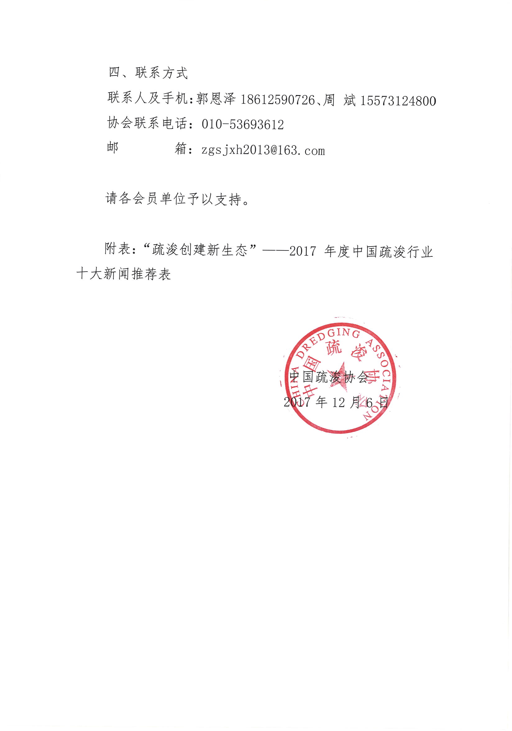 通知下载:关于开展“‘疏浚创建新生态’——2017年度中国疏浚行业十大新闻”评选活动的通知
