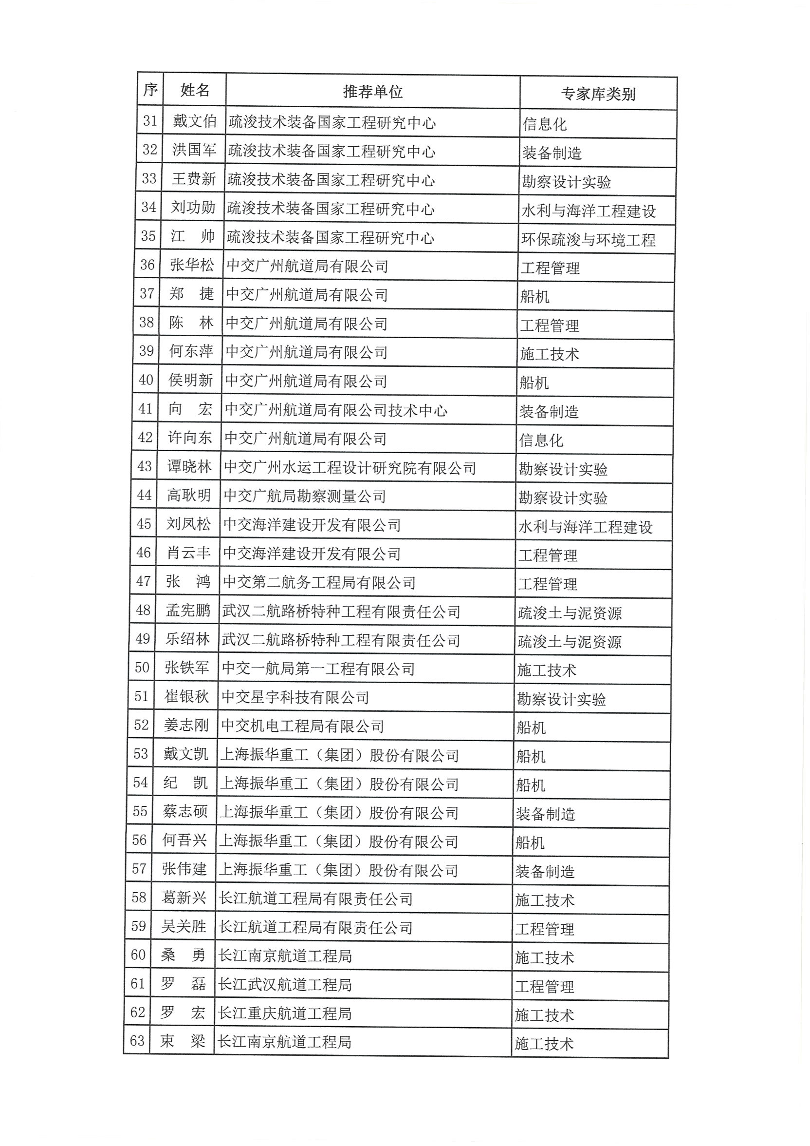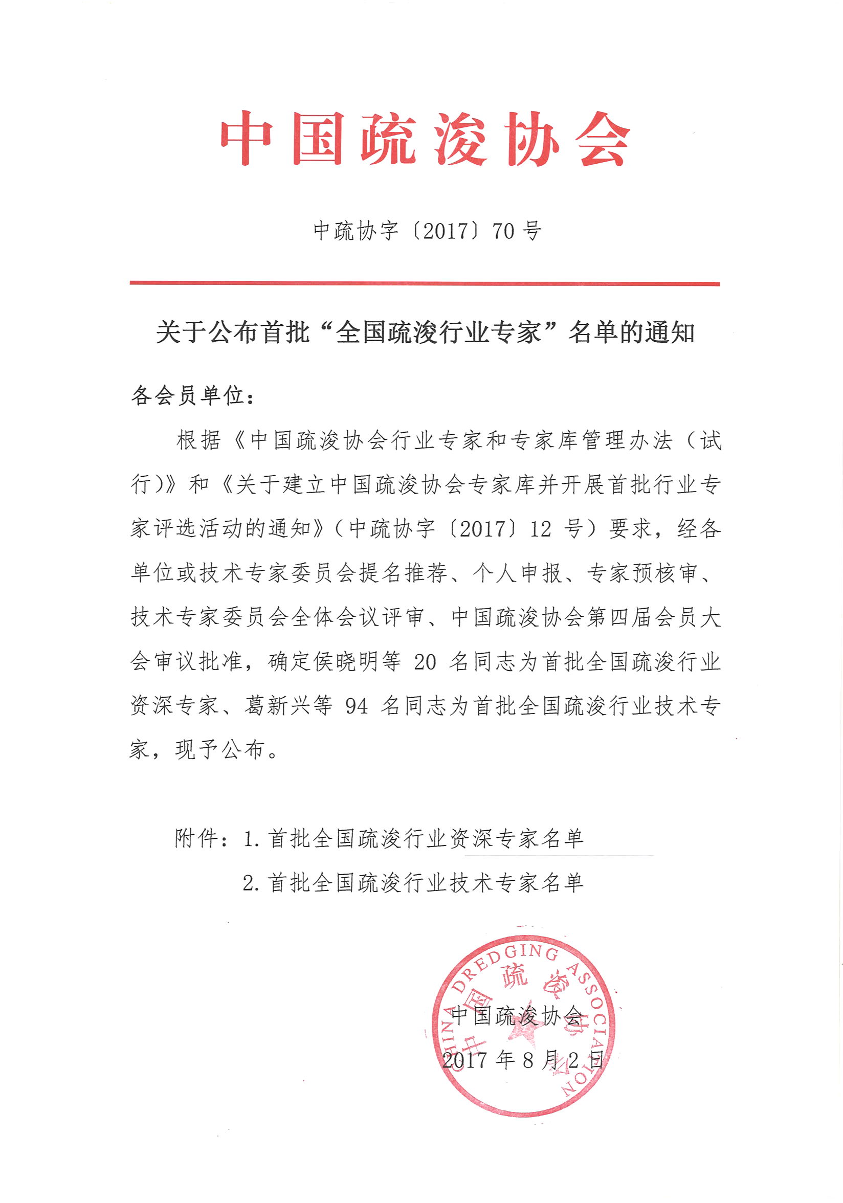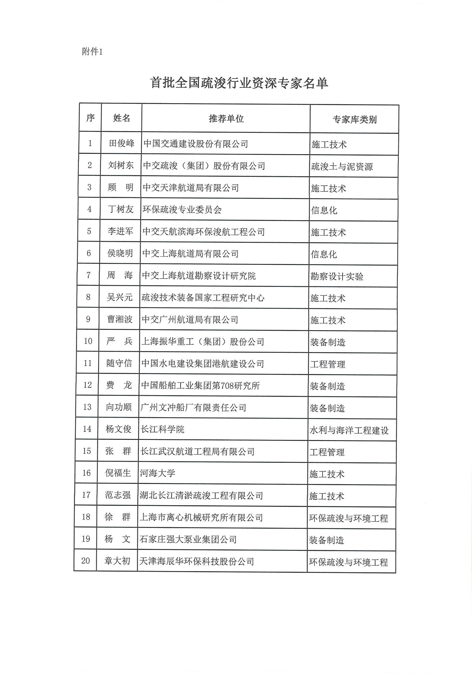 关于公布首批“全国疏浚行业专家”名单的通知