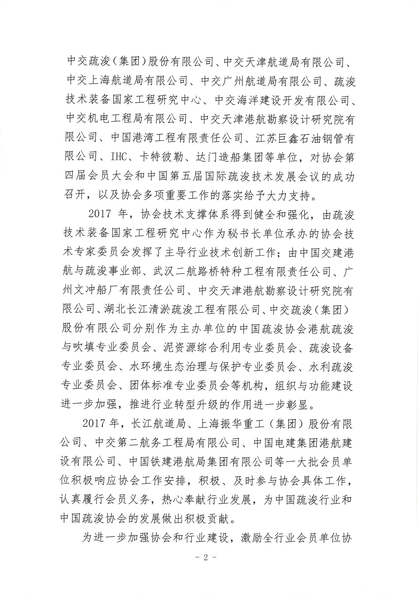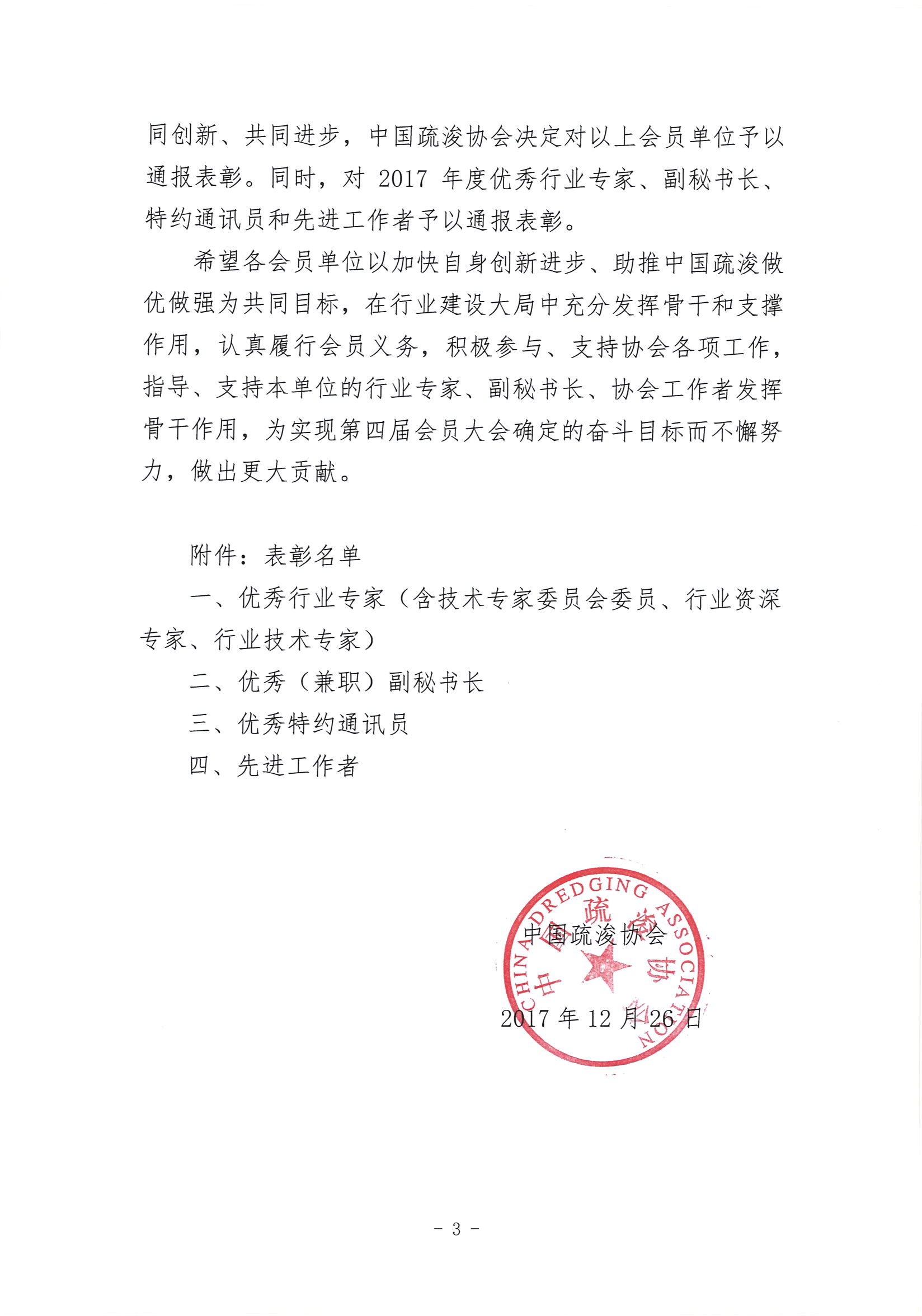 通知下载:中国疏浚协会关于通报表彰2017年度优秀行业专家、副秘书长、特约通讯员和先进工作者的决定
