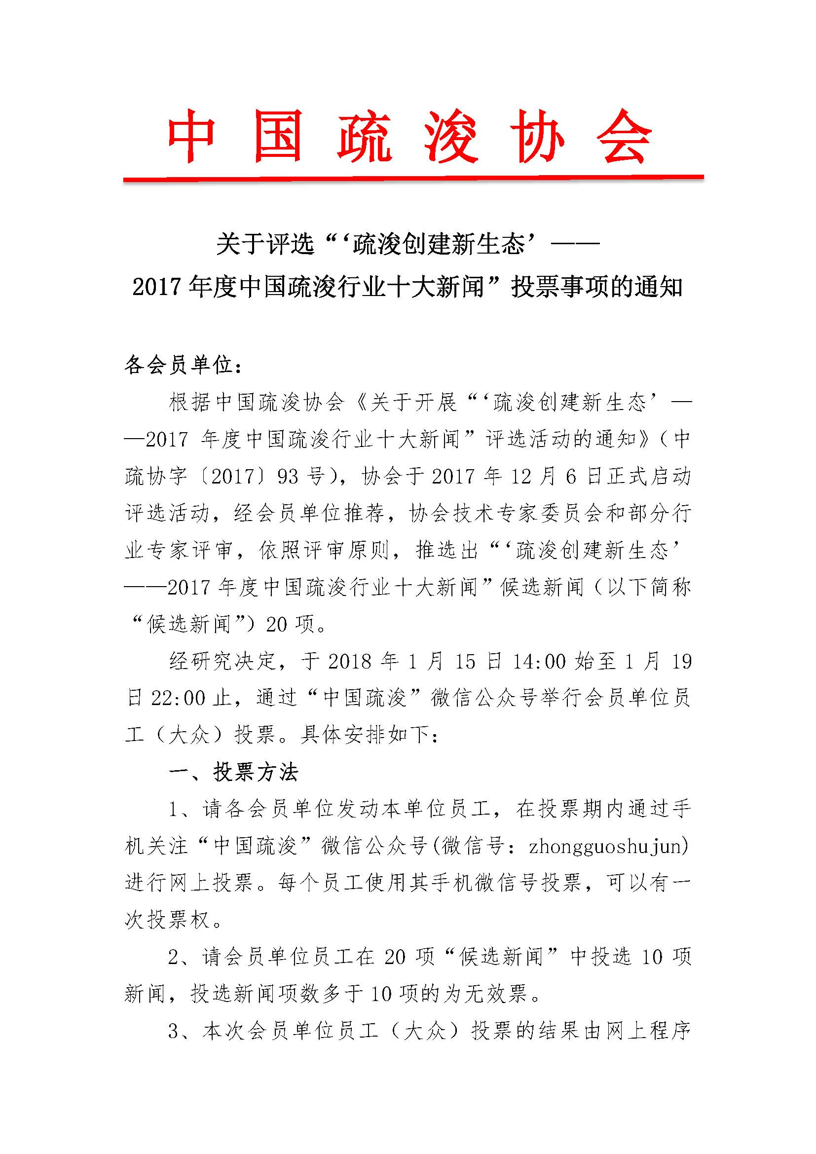 通知下载:关于评选“‘疏浚创建新生态’——2017年度中国疏浚行业十大新闻”投票事项的通知