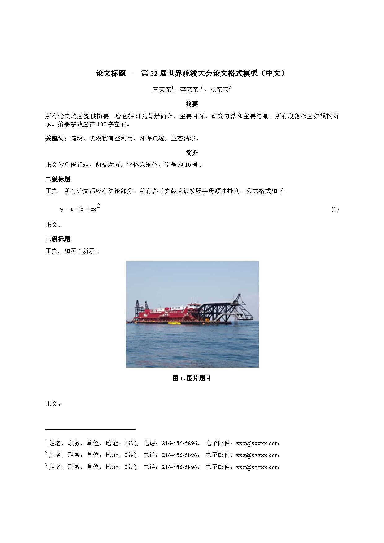 附件3下载:第22届世界疏浚大会论文格式模板(中文)