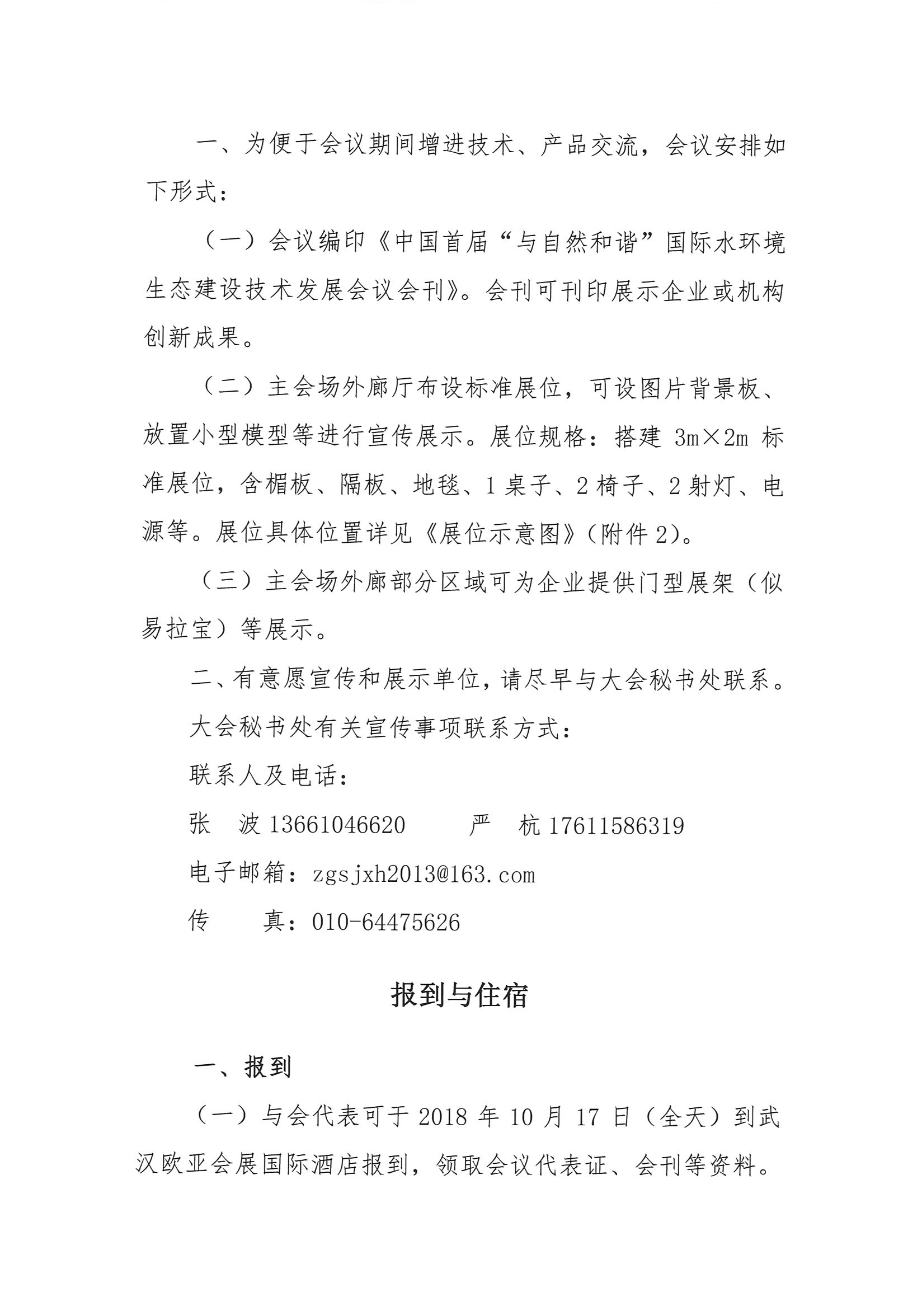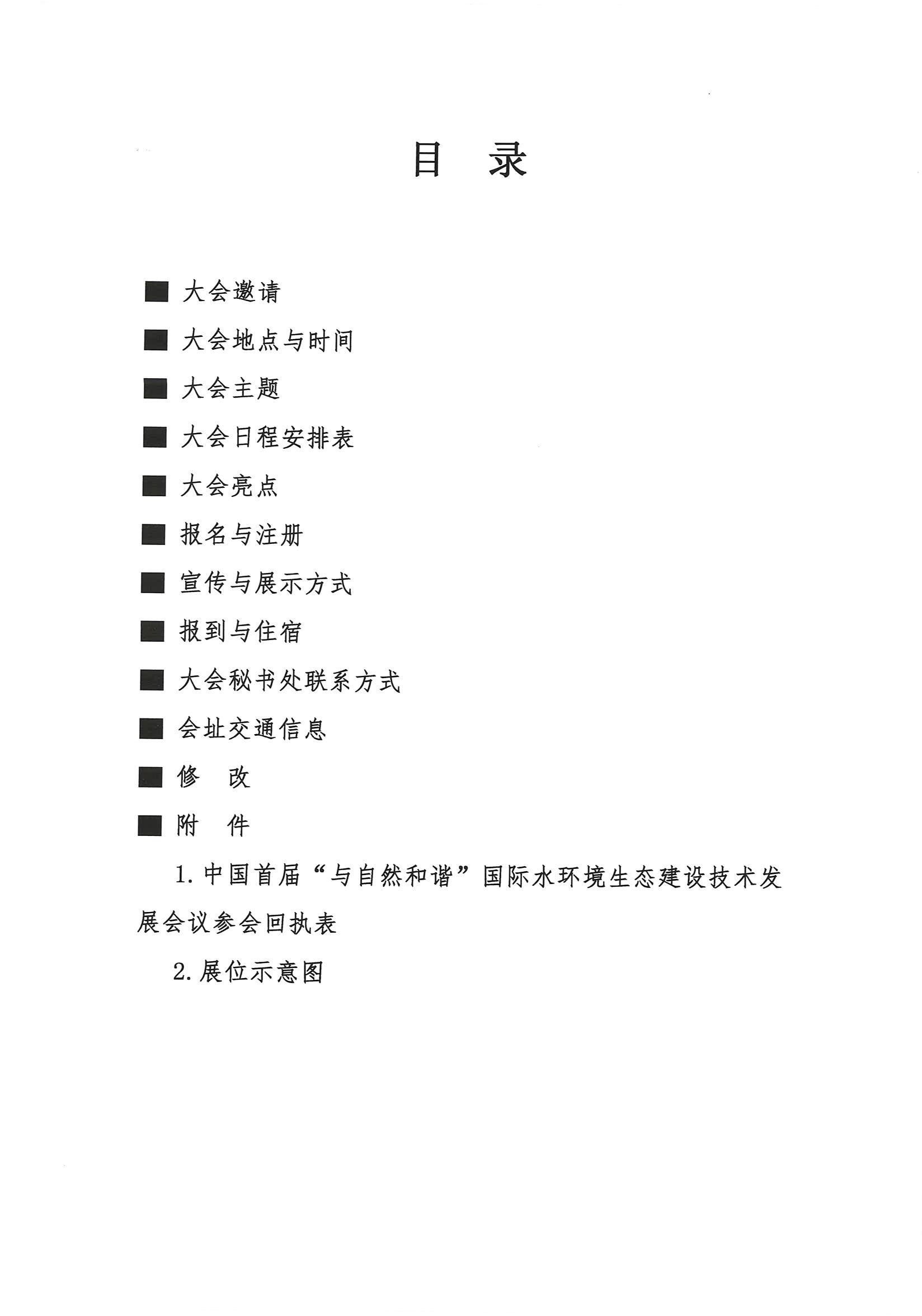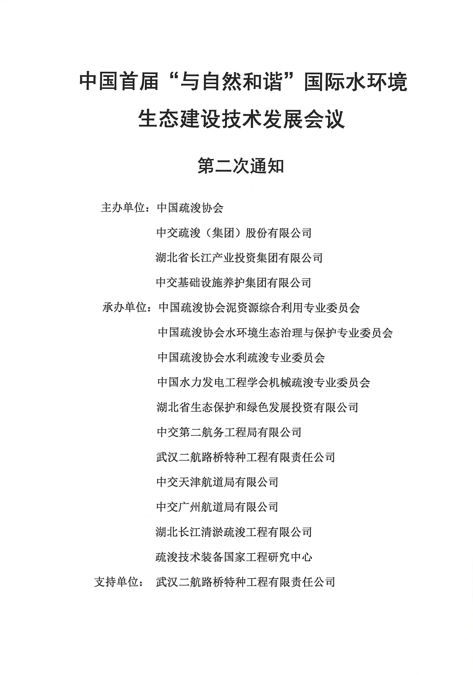 关于召开中国首届“与自然和谐”国际水环境生态建设技术发展会议的第二次通知