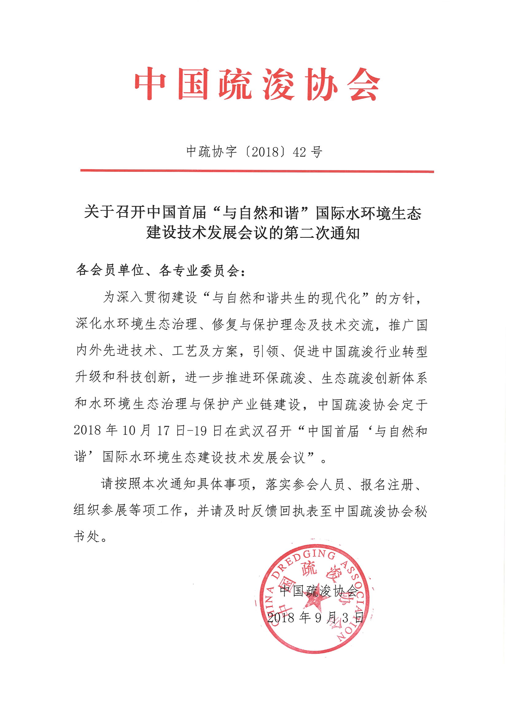 关于召开中国首届智能疏浚与信息化技术发展会议第二次通知