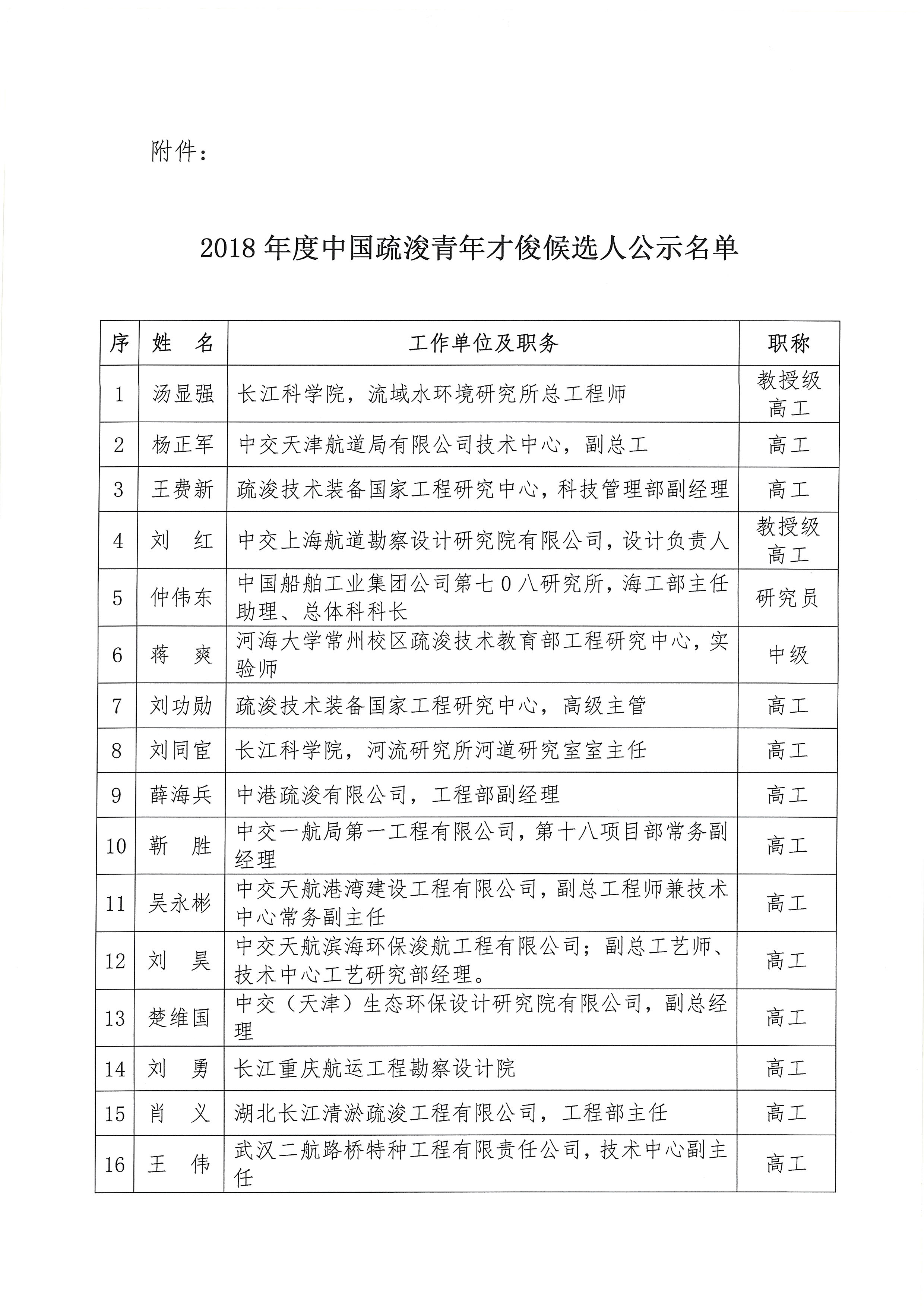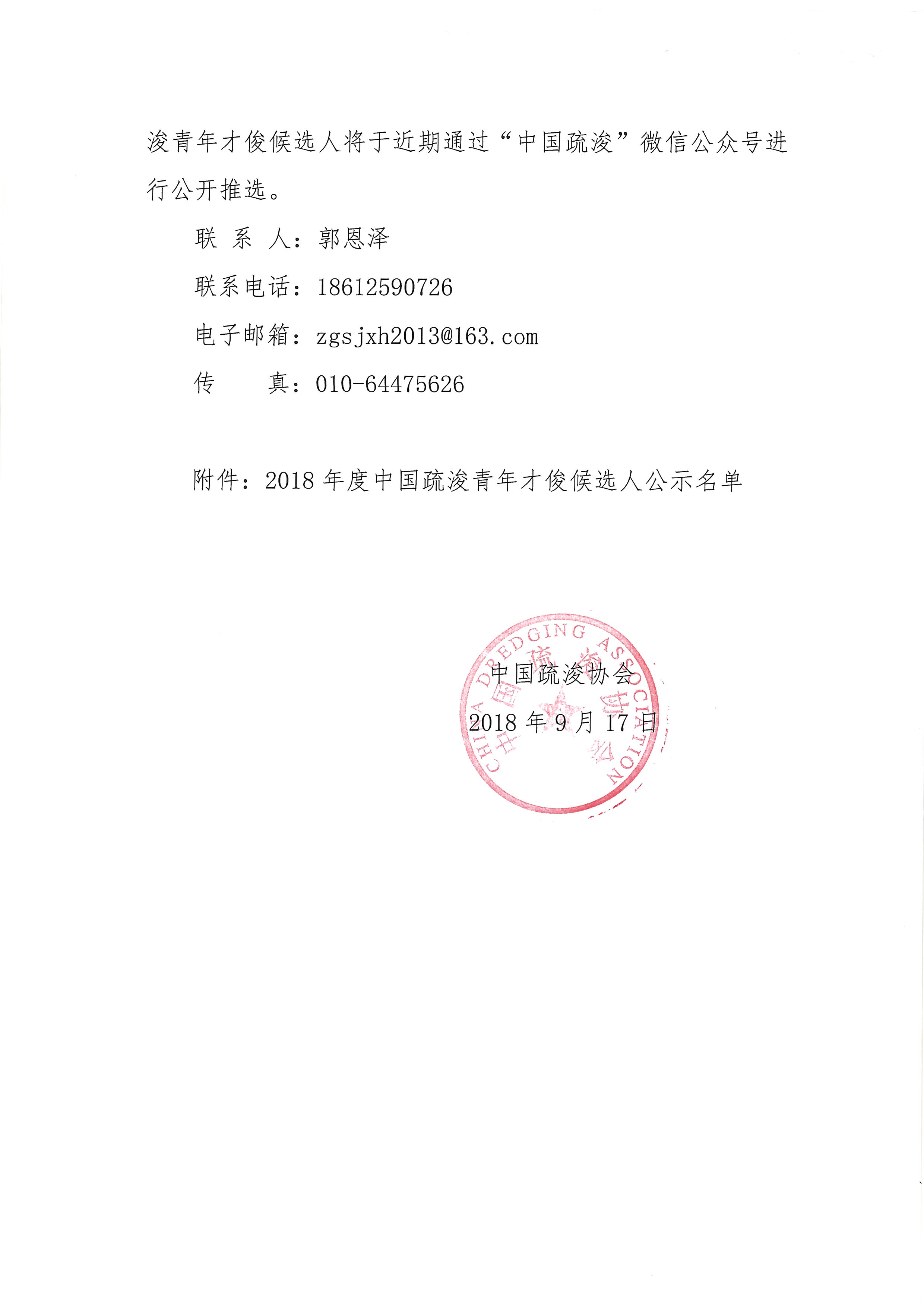 关于2018年度中国疏浚青年才俊候选人公示的通知