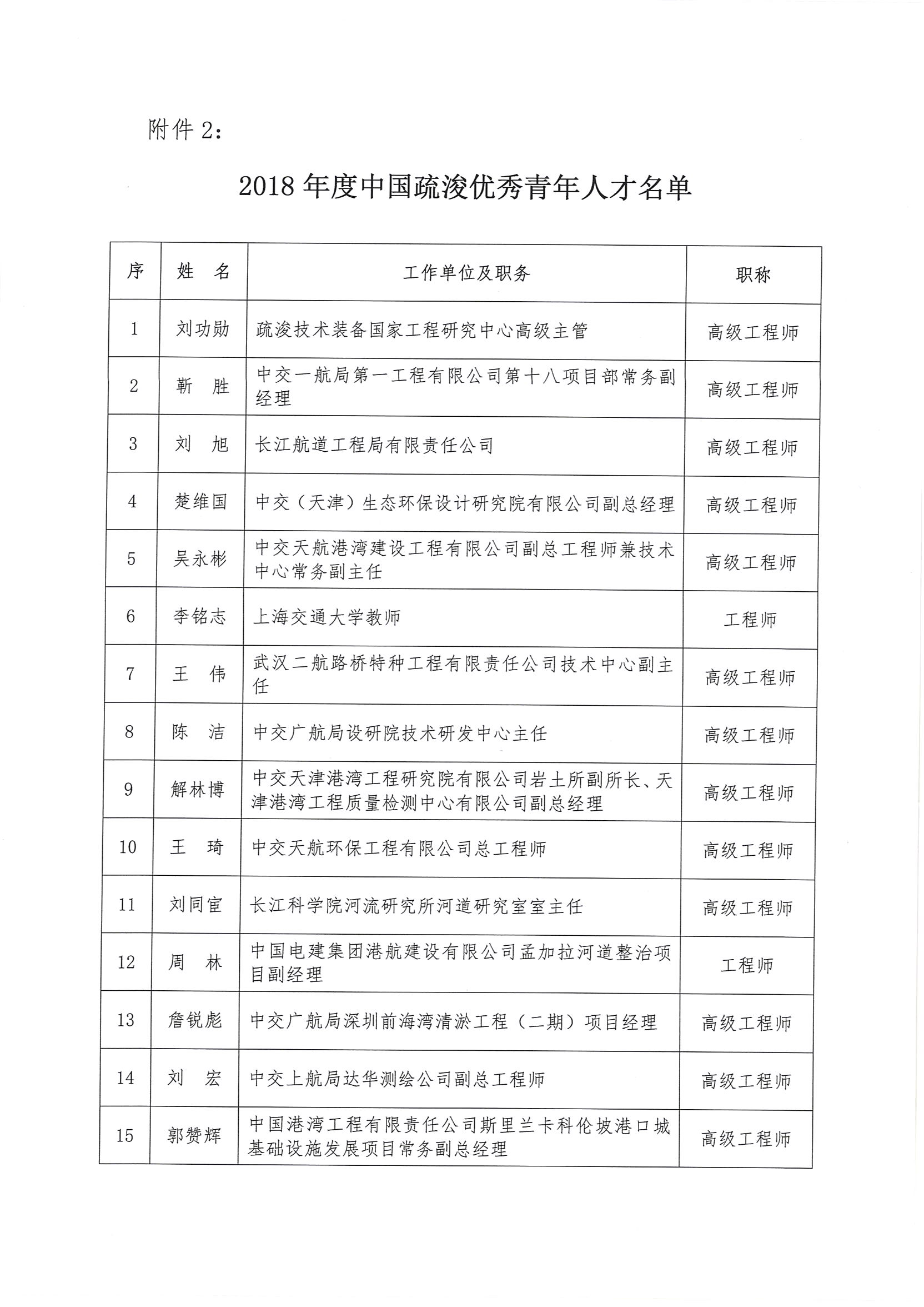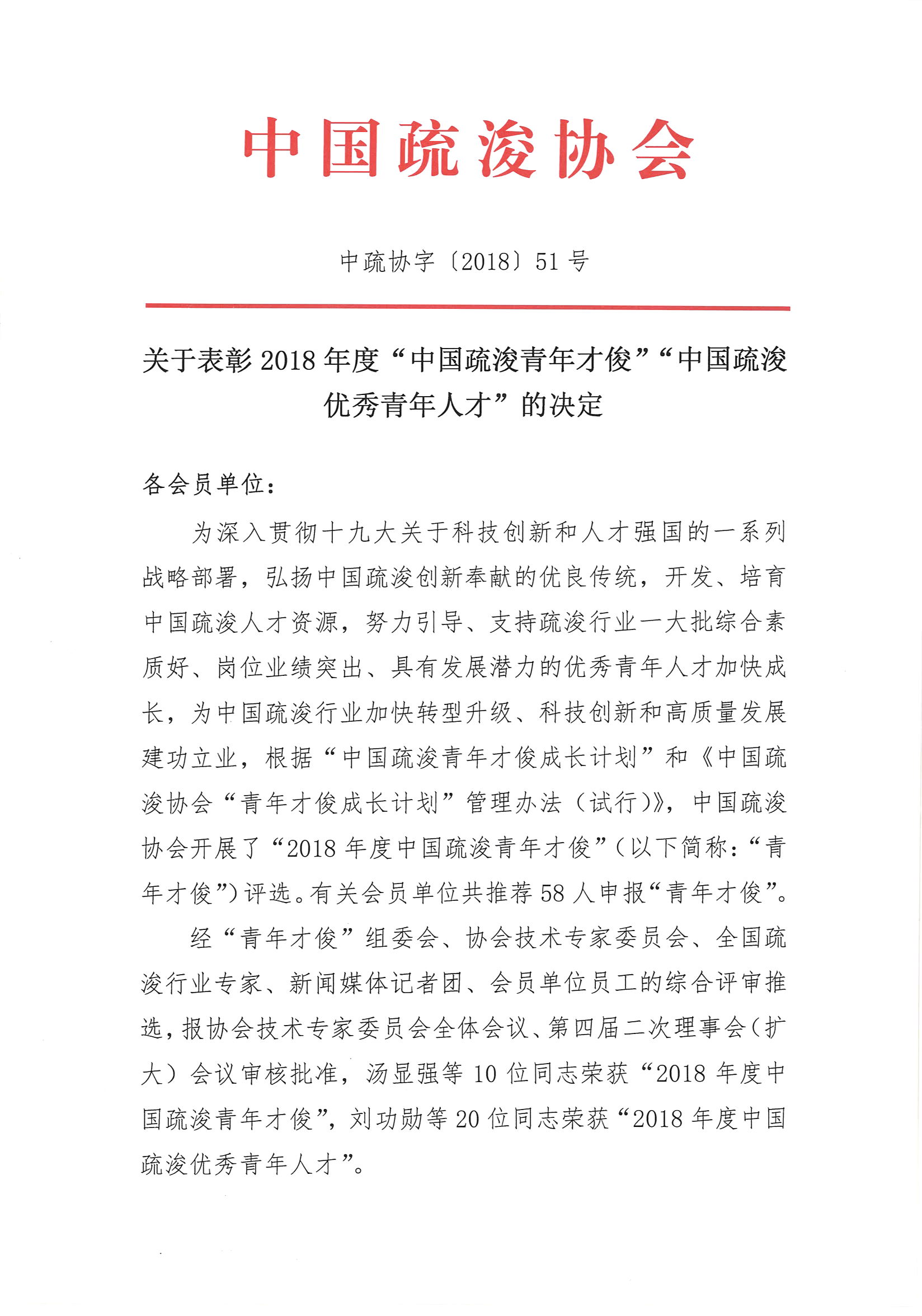 关于表彰2018年度“中国疏浚青年才俊”“中国疏浚优秀青年人才”的决定