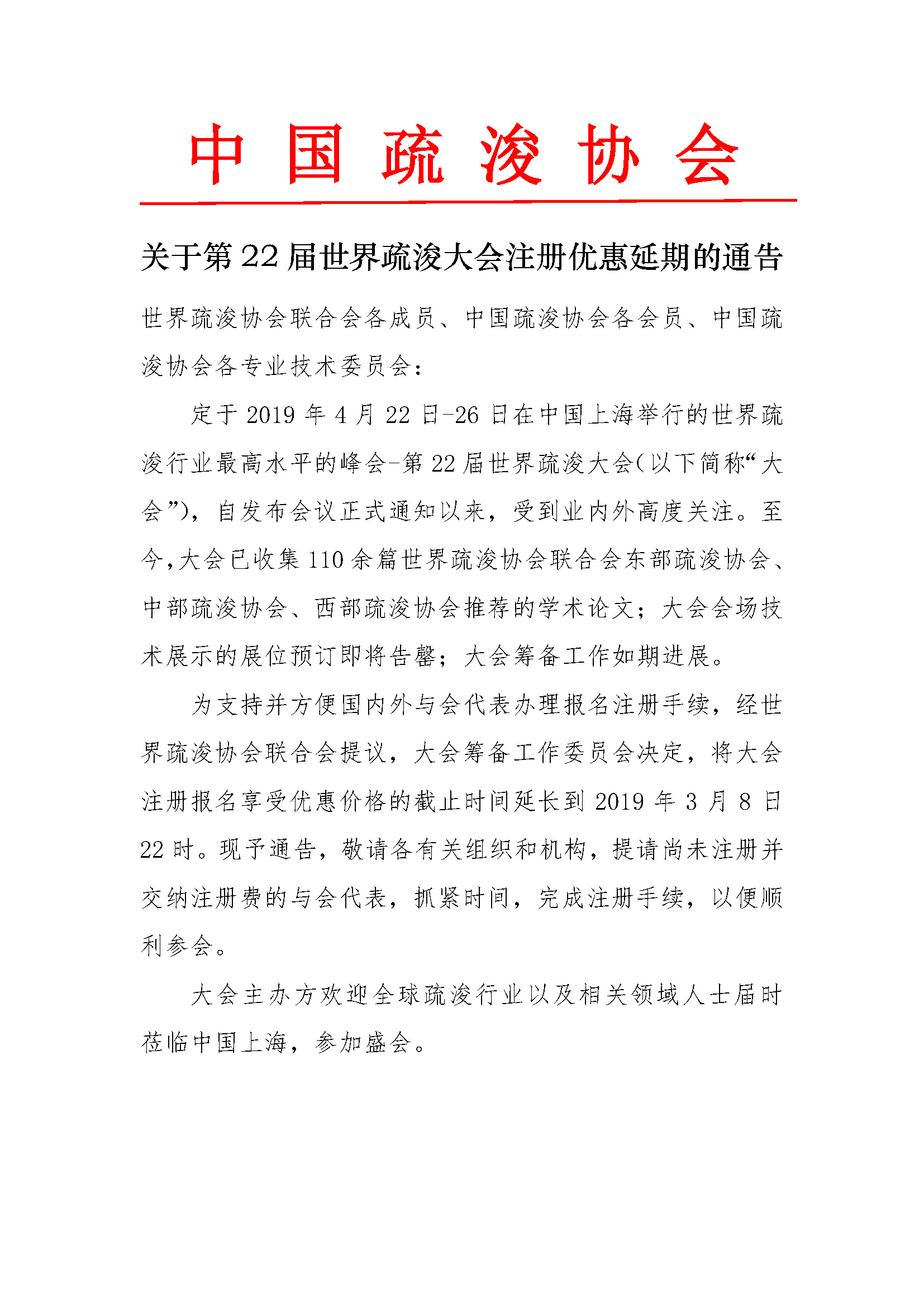 关于关于第22届世界疏浚大会注册优惠延期的通告