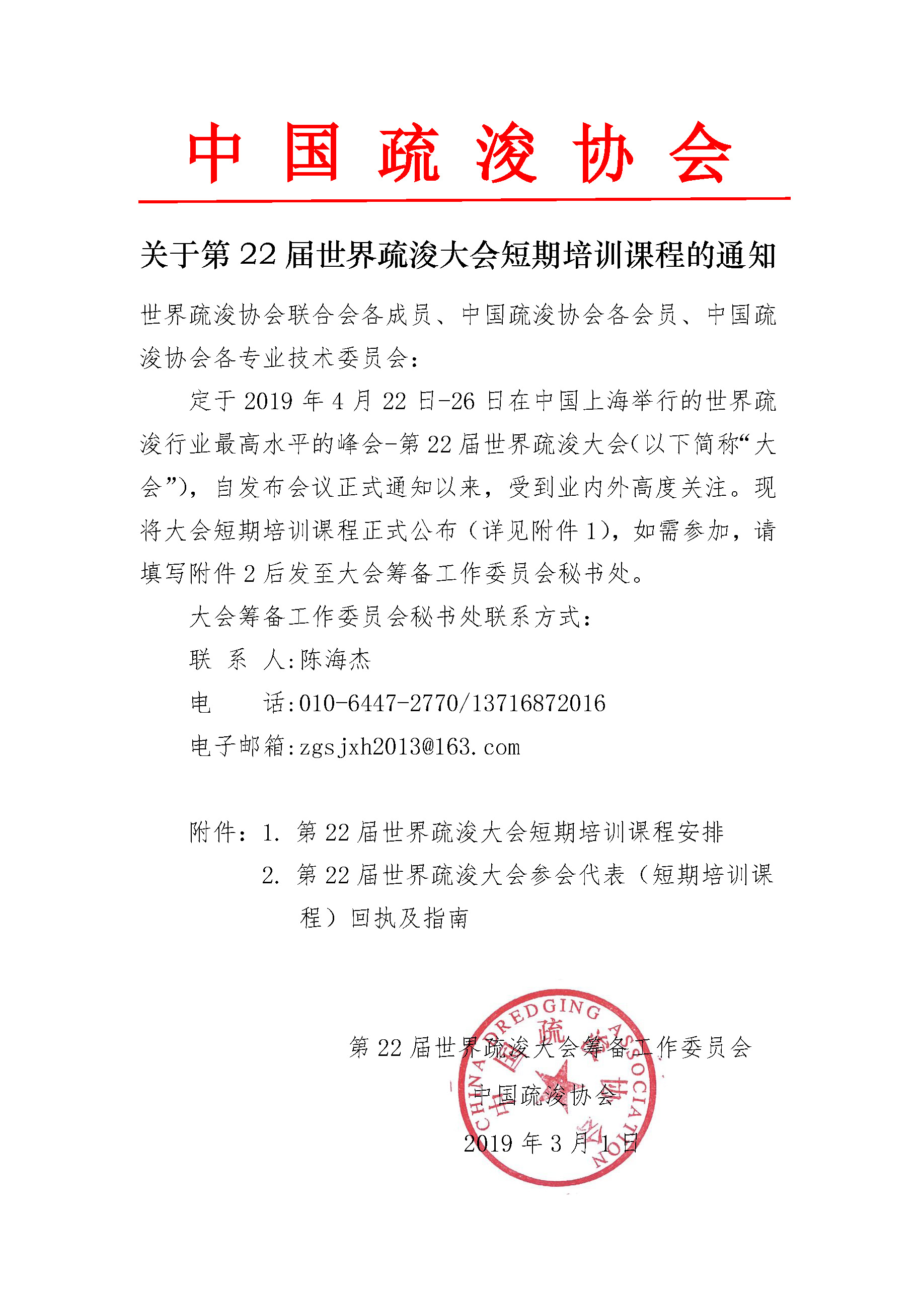 附件2:第22届世界疏浚大会参会代表(短期培训课程)回执及指南
