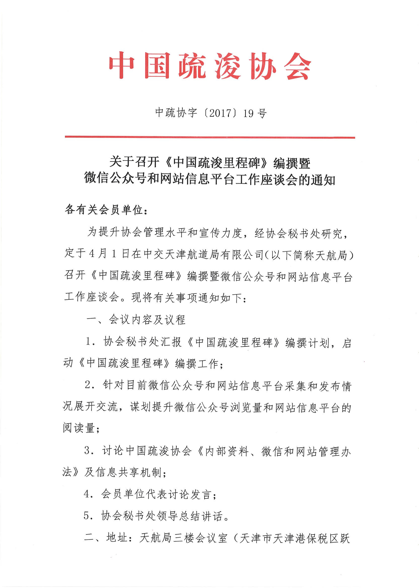 关于召开《中国疏浚里程碑》编撰暨微信公众号和网站信息平台工作座谈会的通知