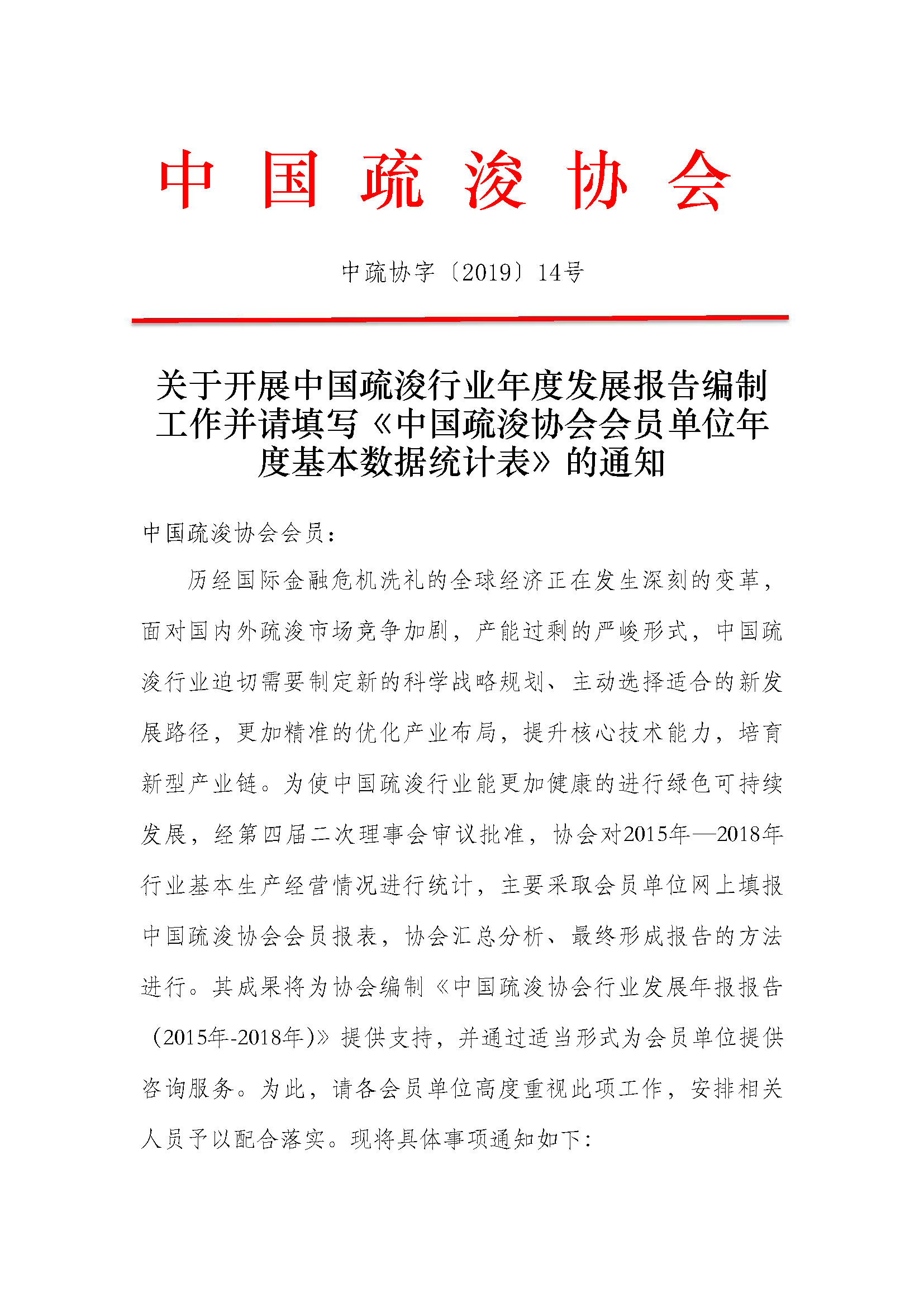 下载:关于开展中国疏浚行业年度发展报告编制工作并请填写《中国疏浚协会会员单位年度基本数据统计表》的通知