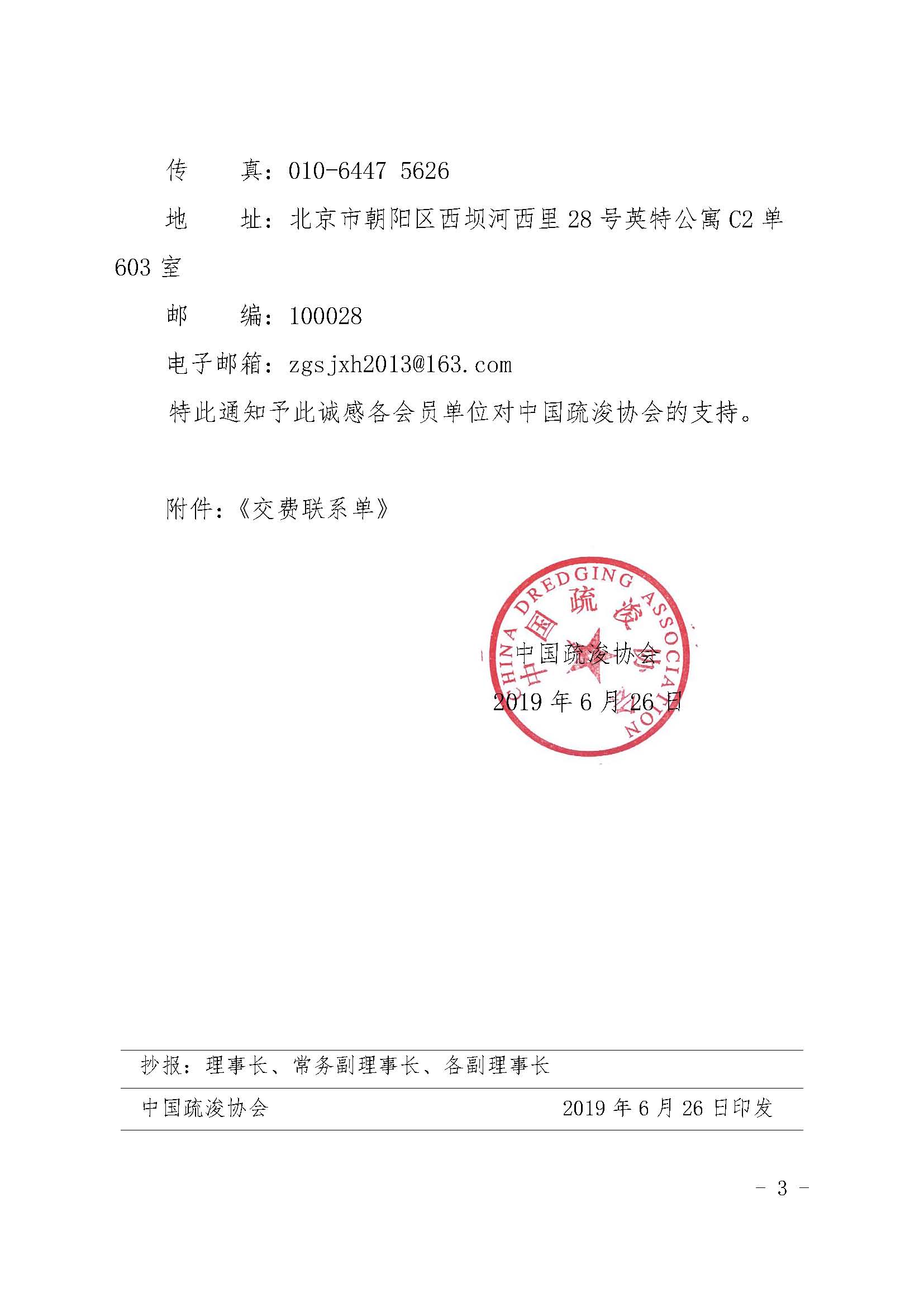 关于交纳2019年度中国疏浚协会会员单位会费的通知