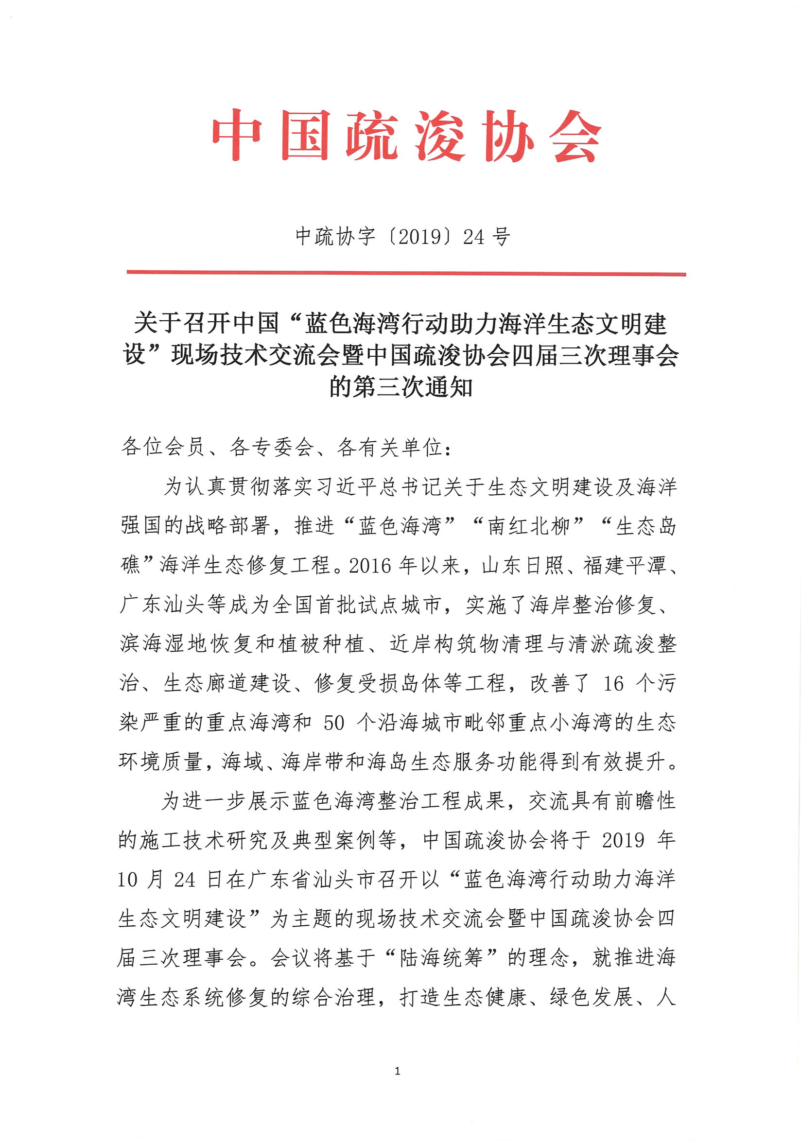 关于召开“蓝色海湾行动助力海洋生态文明建设”现场技术交流会暨中国疏浚协会四届三次理事会的第三次通知