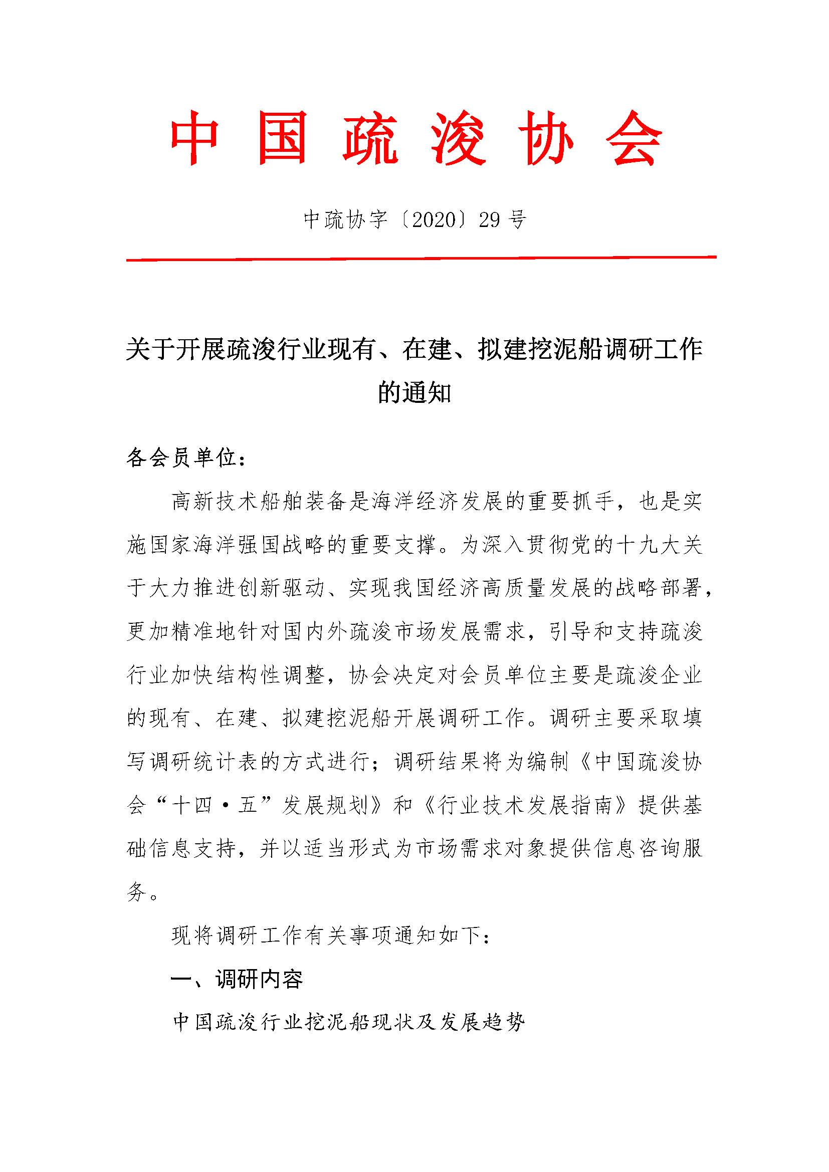 关于开展对疏浚行业现有、在建、拟建挖泥船调研工作的通知