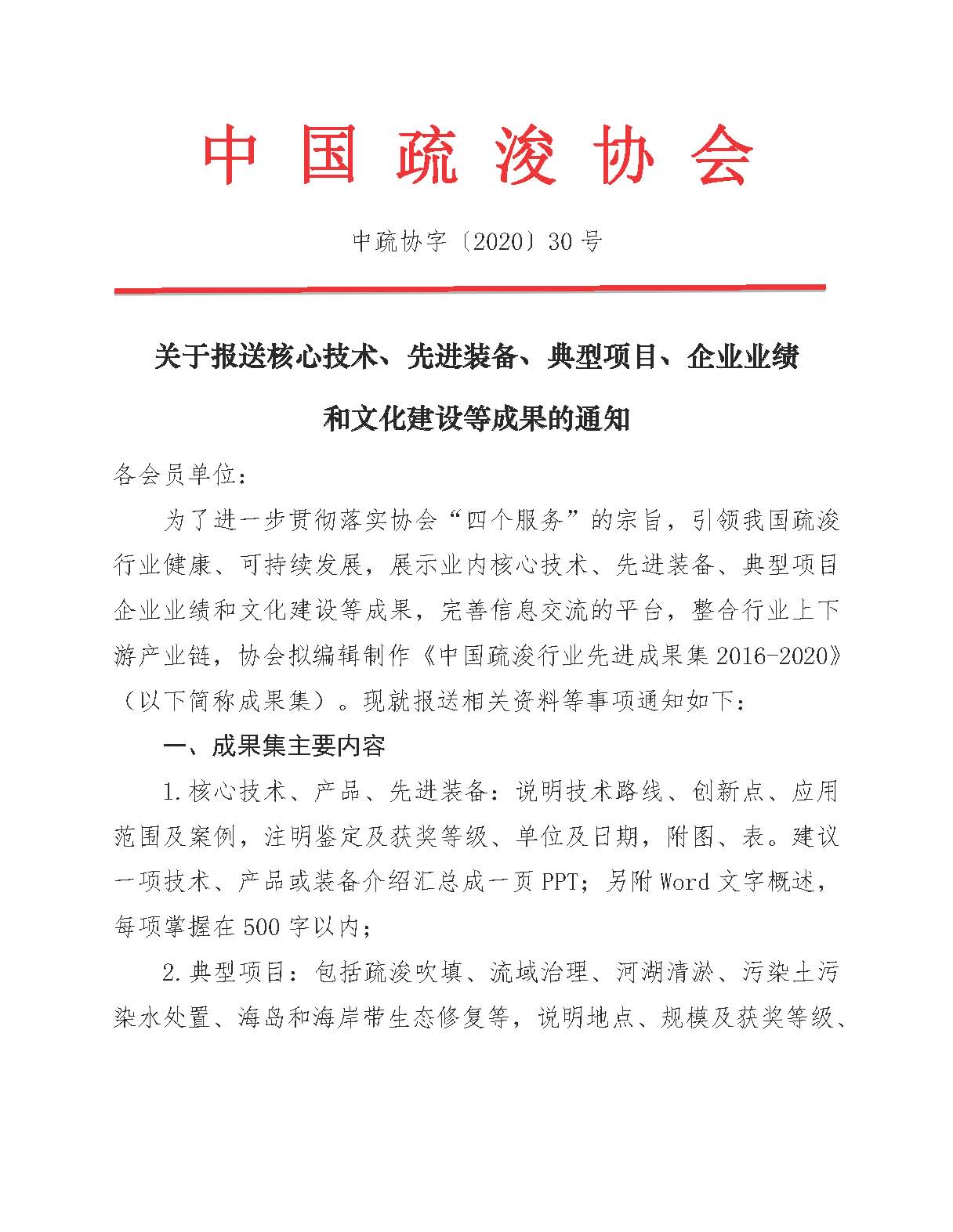 关于报送核心技术、先进装备、典型项目、企业业绩和文化建设等成果的通知