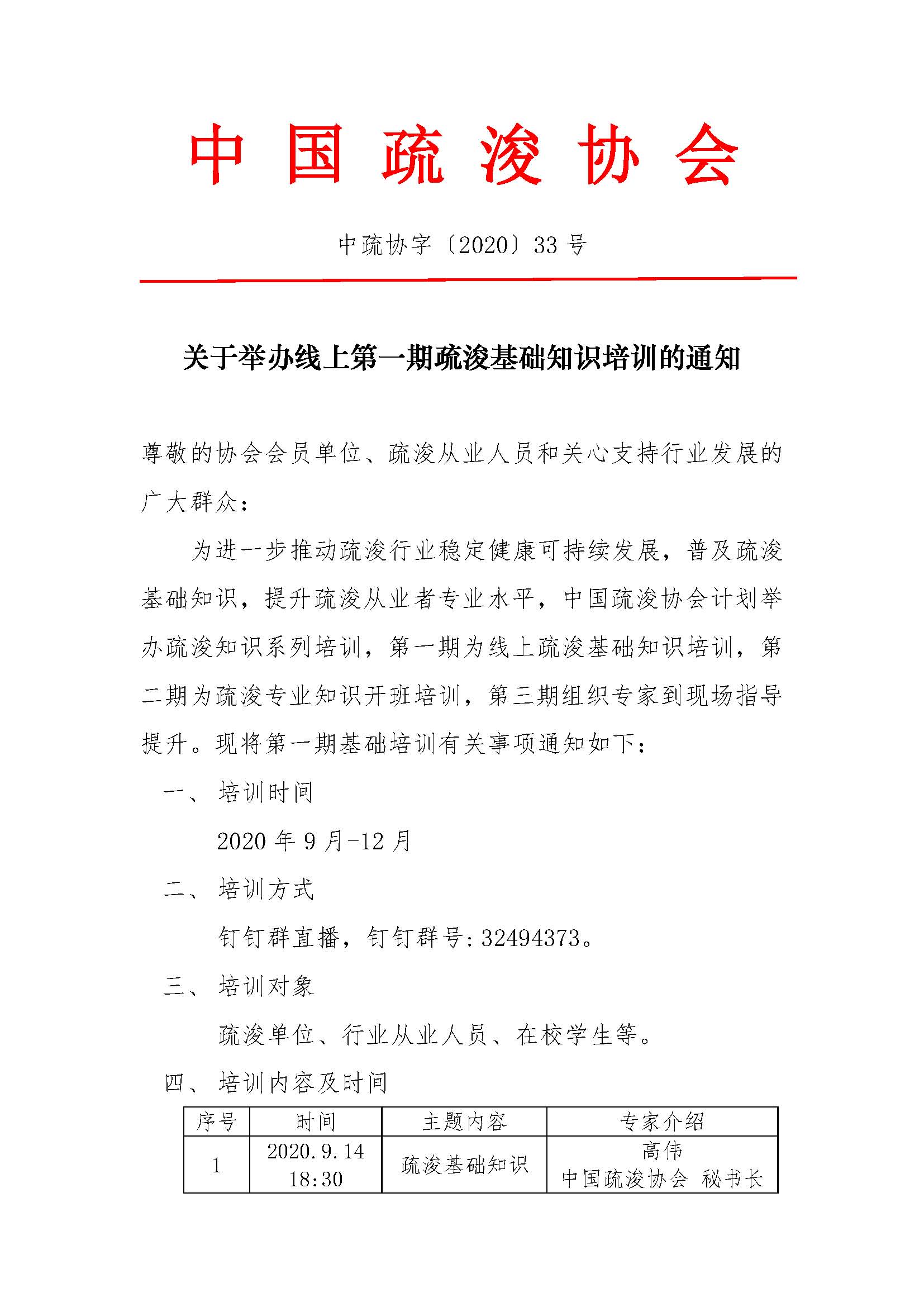 关于举办线上疏浚技术第一期基础系列培训的通知