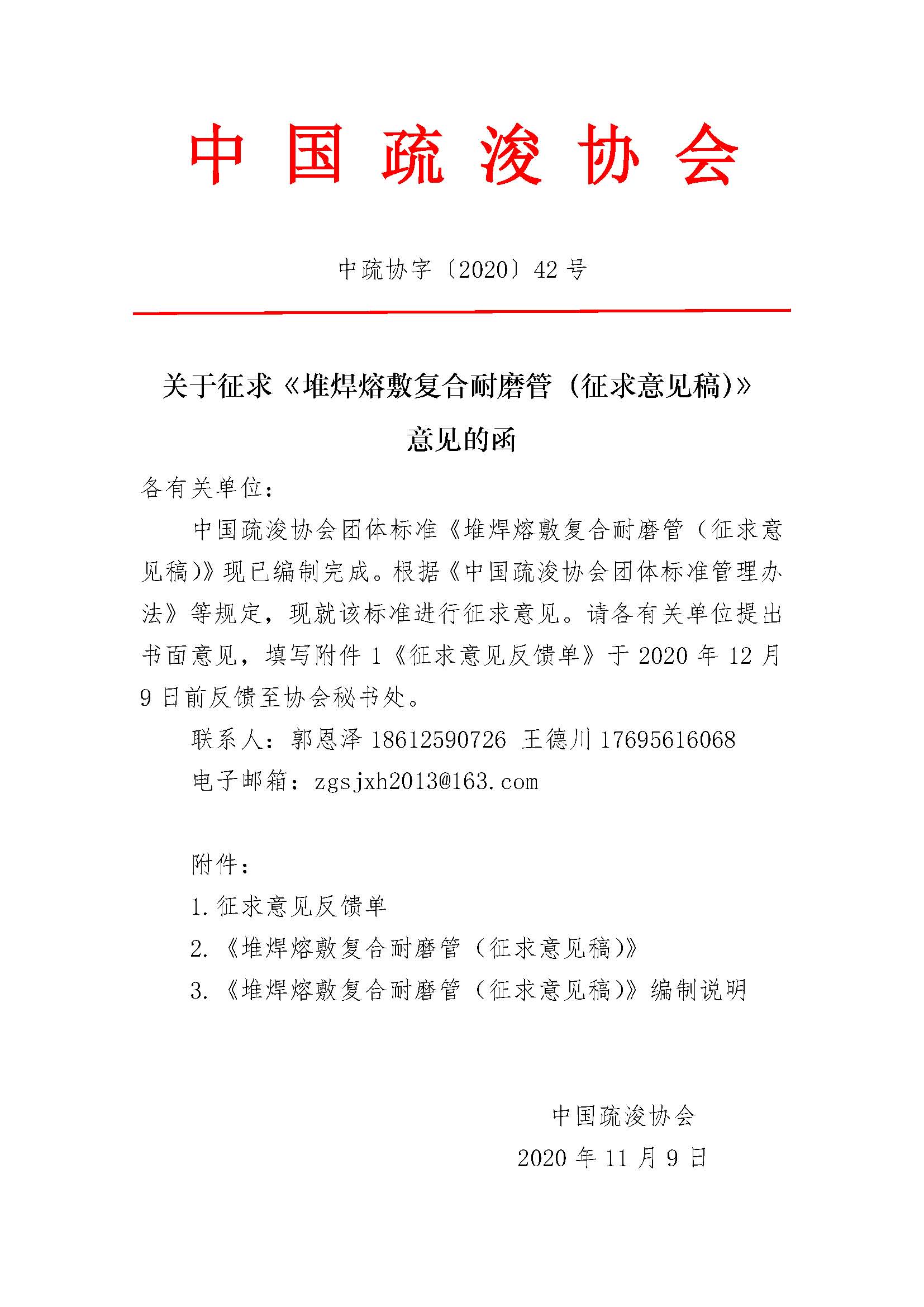关于征求《堆焊熔敷复合耐磨管(征求意见稿)》意见的函
