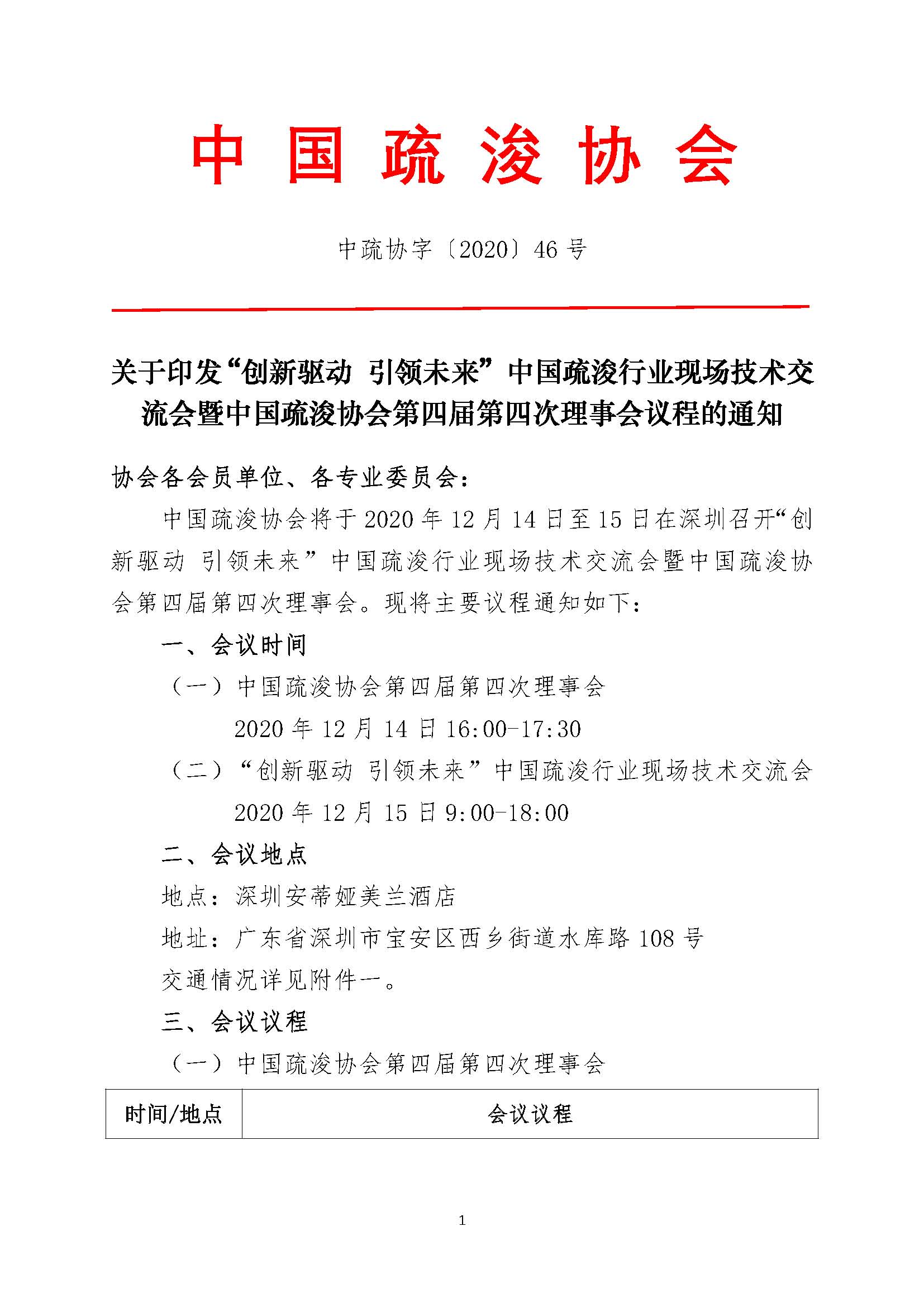 关于印发“创新驱动 引领未来”中国疏浚行业现场技术交流会暨中国疏浚协会第四届第四次理事会议程的通知