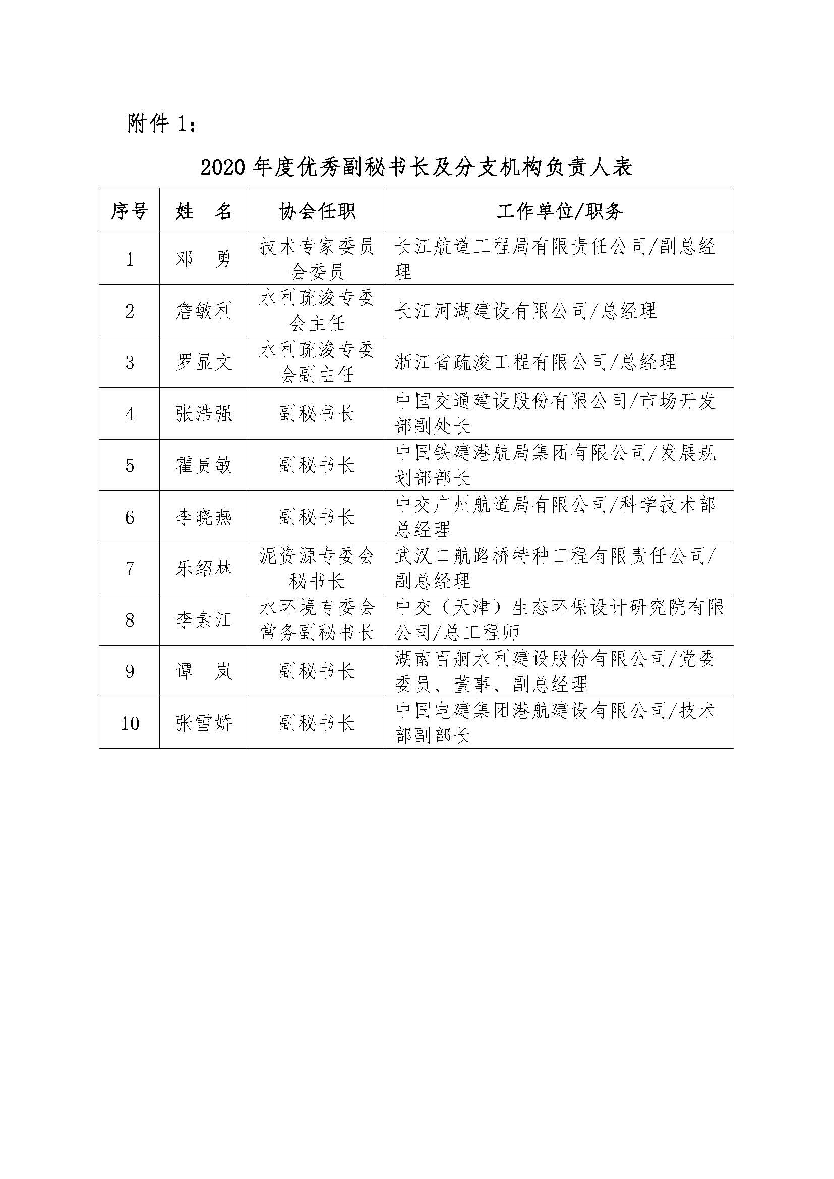 附件1:2020年度优秀副秘书长及分支机构负责人表