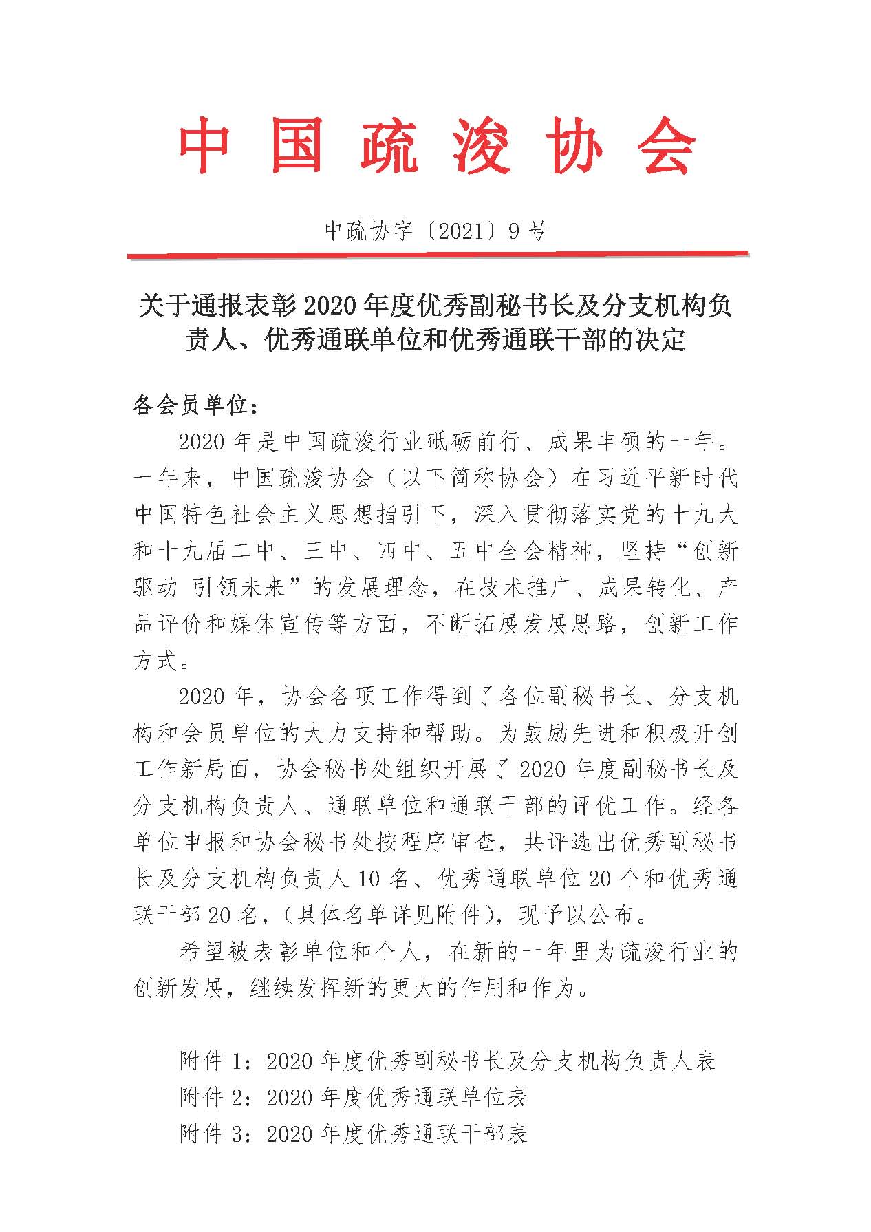 关于通报表彰2020年度优秀副秘书长及分支机构负责人、优秀通联单位和优秀通联干部的决定
