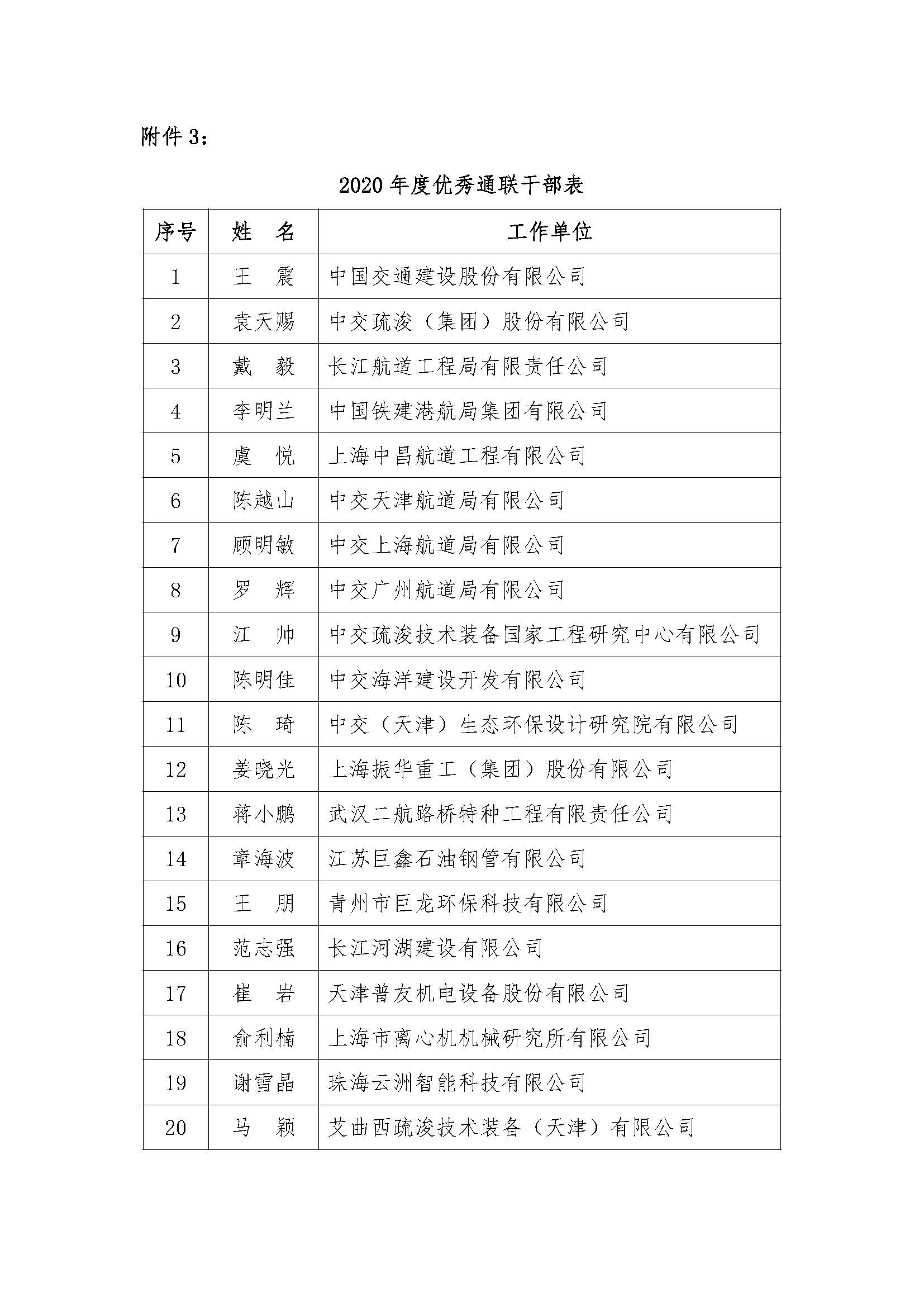 附件3:2020年度优秀通联干部表