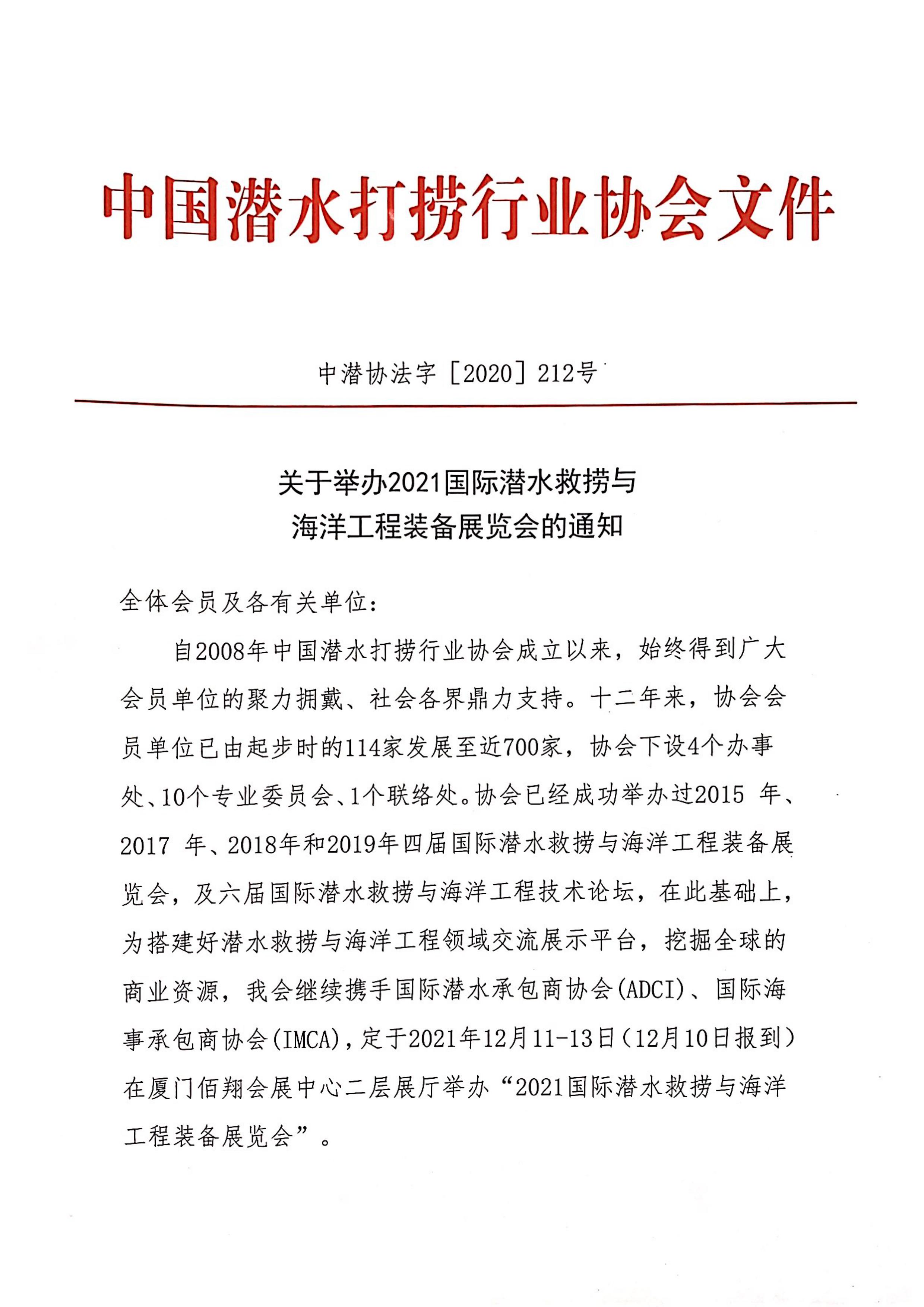 附件:关于举办2021国际潜水救捞与海洋工程装备展览会的通知