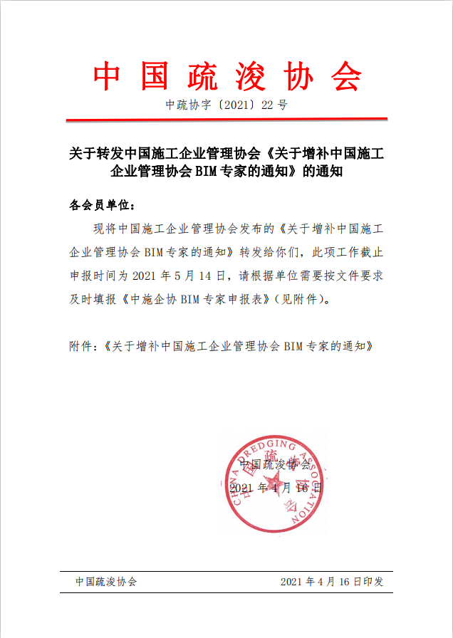 关于转发中国施工企业管理协会《关于增补中国施工企业管理协会BIM专家的通知》的通知
