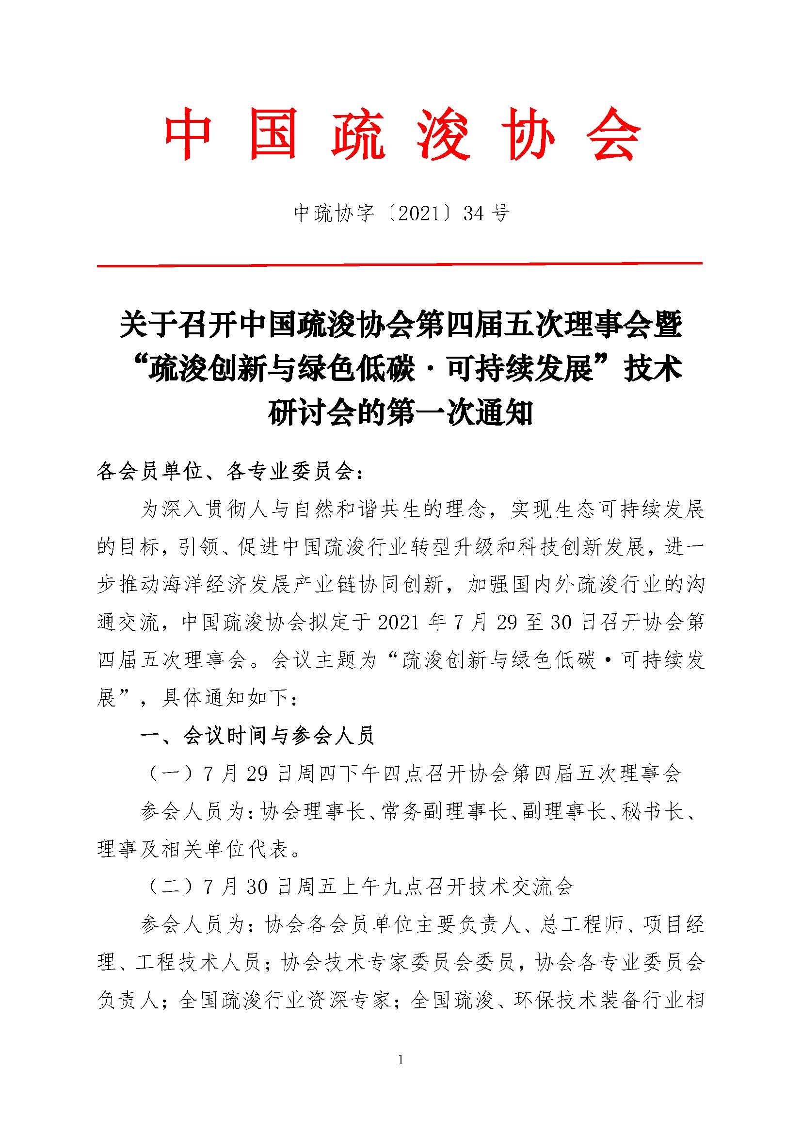 关于召开中国疏浚协会第四届五次理事会暨“疏浚创新与绿色低碳·可持续发展”技术研讨会的第一次通知