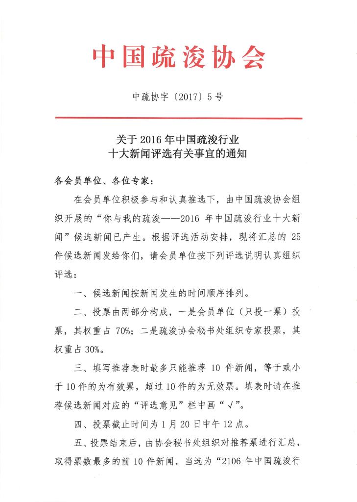 通知下载:关于2016年中国疏浚行业十大新闻评选有关事宜的通知(中疏协字〔2017〕5号)